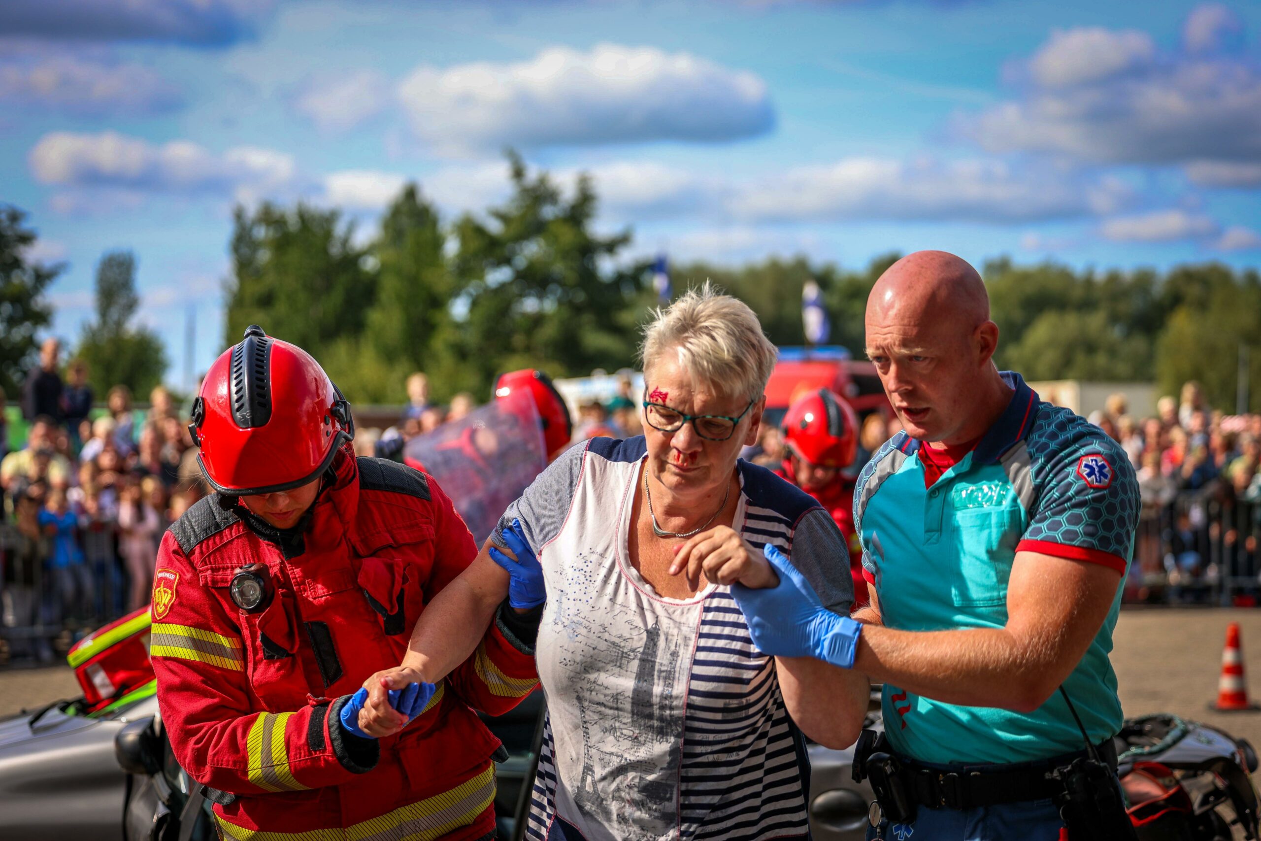 “Op zo’n dag laten we graag zien wat we kunnen. En ook hoe de samenwerking met andere hulpdiensten verloopt. Daarom hadden we drie verschillende demonstraties. Bij de eerste demonstratie brak er brand uit in een caravan. Het publiek kreeg te zien hoe wij zo’n brand aanpakken. Daarbij werden de toeschouwers voortdurend bijgepraat door onze Anno Bulthuis. Anno is onze spreekstalmeester en hij legde voortdurend uit wat mensen op het terrein nu eigenlijk zagen.”
