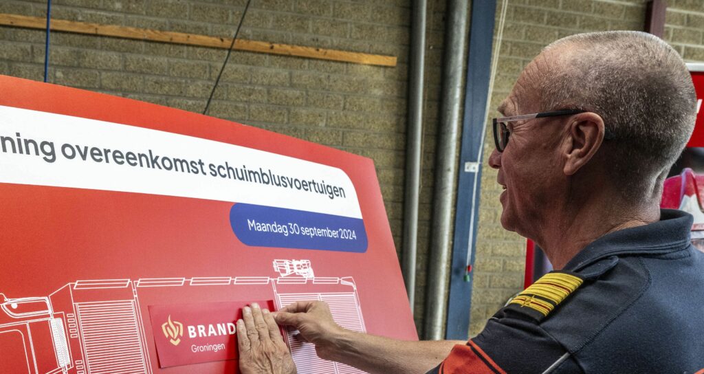 Brandweercommandant Roelf Knoop en Marin Schouten (directeur Ziegler in Winschoten, het bedrijf wat de schuimwagens gaat bouwen) zetten maandag de handtekeningen voor de aanschaf. De brandweer in de provincie Groningen ook nu twee schuimblusvoertuigen, die allebei aan vervanging toe zijn. Eind 2026 zijn de vervangers klaar.