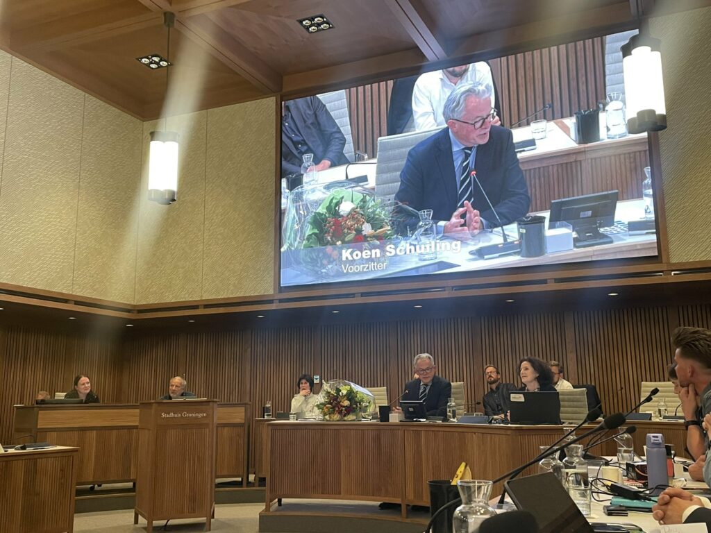 Na het uitspreken van die woorden staat Schuiling op en loopt de raadszaal uit. Van de raadsleden, die zijn gaan staan, krijgt hij een luid applaus. Schuiling werd op 30 september 2019 benoemd als burgemeester van Groningen. Vorige maand maakte hij onverwachts bekend vanwege oververmoeidheid te zullen stoppen. Zijn laatste werkdag is op 23 oktober. Vorige week werd bekend dat de burgemeester eerder dit jaar is bestraft door het Openbaar Ministerie met een boete van 250 euro vanwege ‘aanstootgevend gedrag’ en ‘schennis van de eerbaarheid’. Schuiling gaat hier tegen in beroep.