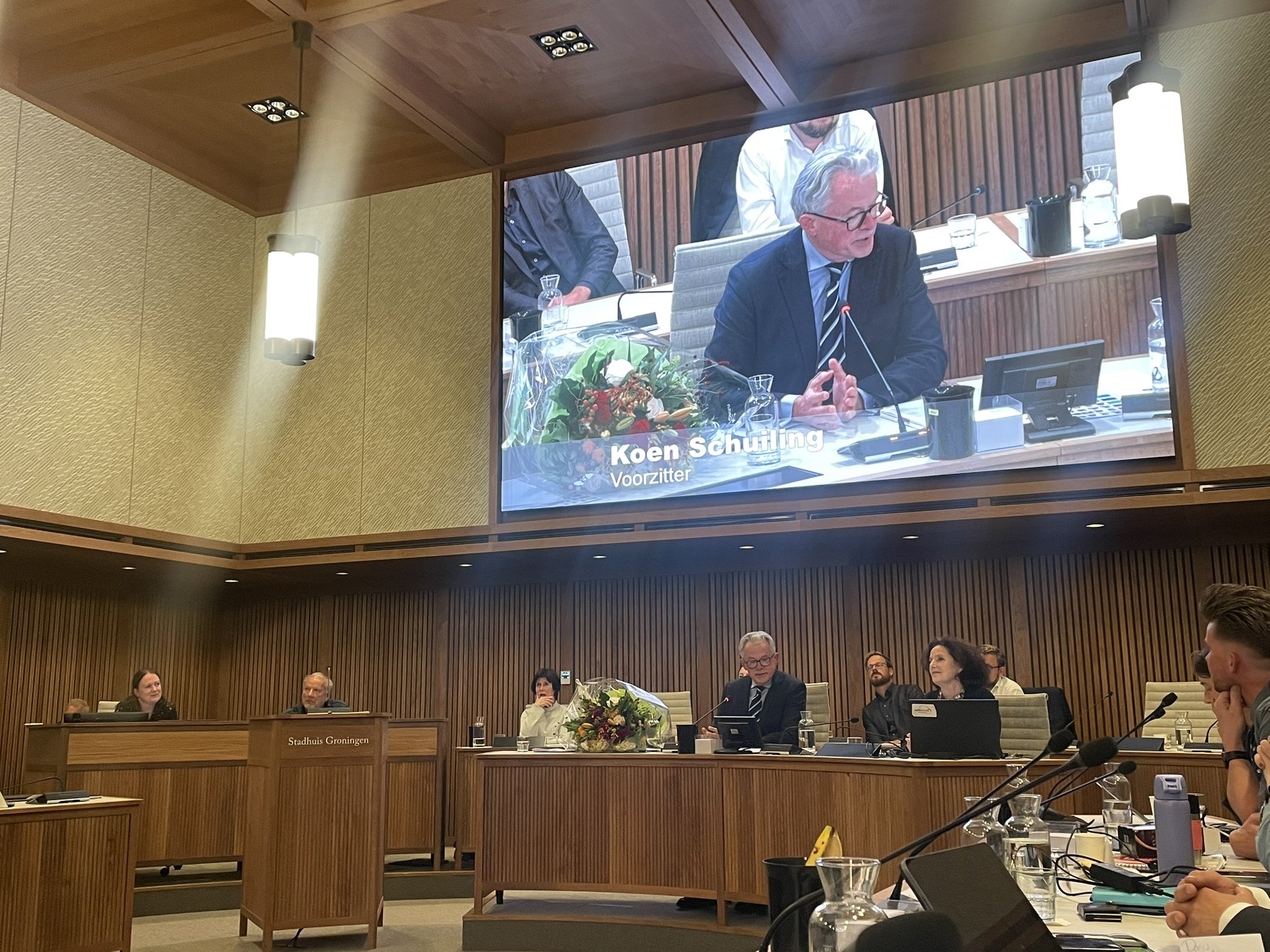 Na het uitspreken van die woorden staat Schuiling op en loopt de raadszaal uit. Van de raadsleden, die zijn gaan staan, krijgt hij een luid applaus. Schuiling werd op 30 september 2019 benoemd als burgemeester van Groningen. Vorige maand maakte hij onverwachts bekend vanwege oververmoeidheid te zullen stoppen. Zijn laatste werkdag is op 23 oktober. Vorige week werd bekend dat de burgemeester eerder dit jaar is bestraft door het Openbaar Ministerie met een boete van 250 euro vanwege ‘aanstootgevend gedrag’ en ‘schennis van de eerbaarheid’. Schuiling gaat hier tegen in beroep.