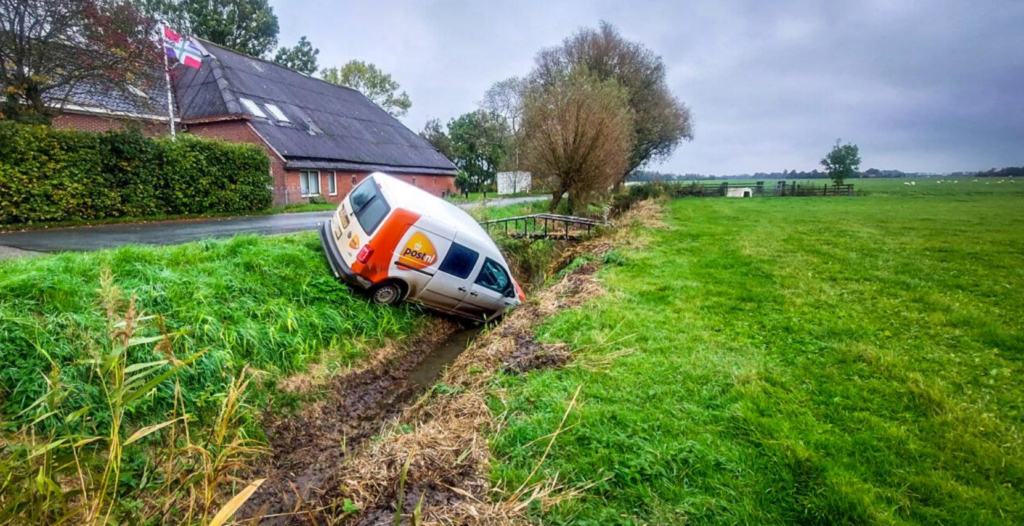 Een bestelbusje van een pakketbezorger is zaterdagmiddag in een sloot terecht komen aan de Stadsweg tussen Ten Boer en Ten Post. Dat meldt de nieuwswebsite 112groningen.nl.