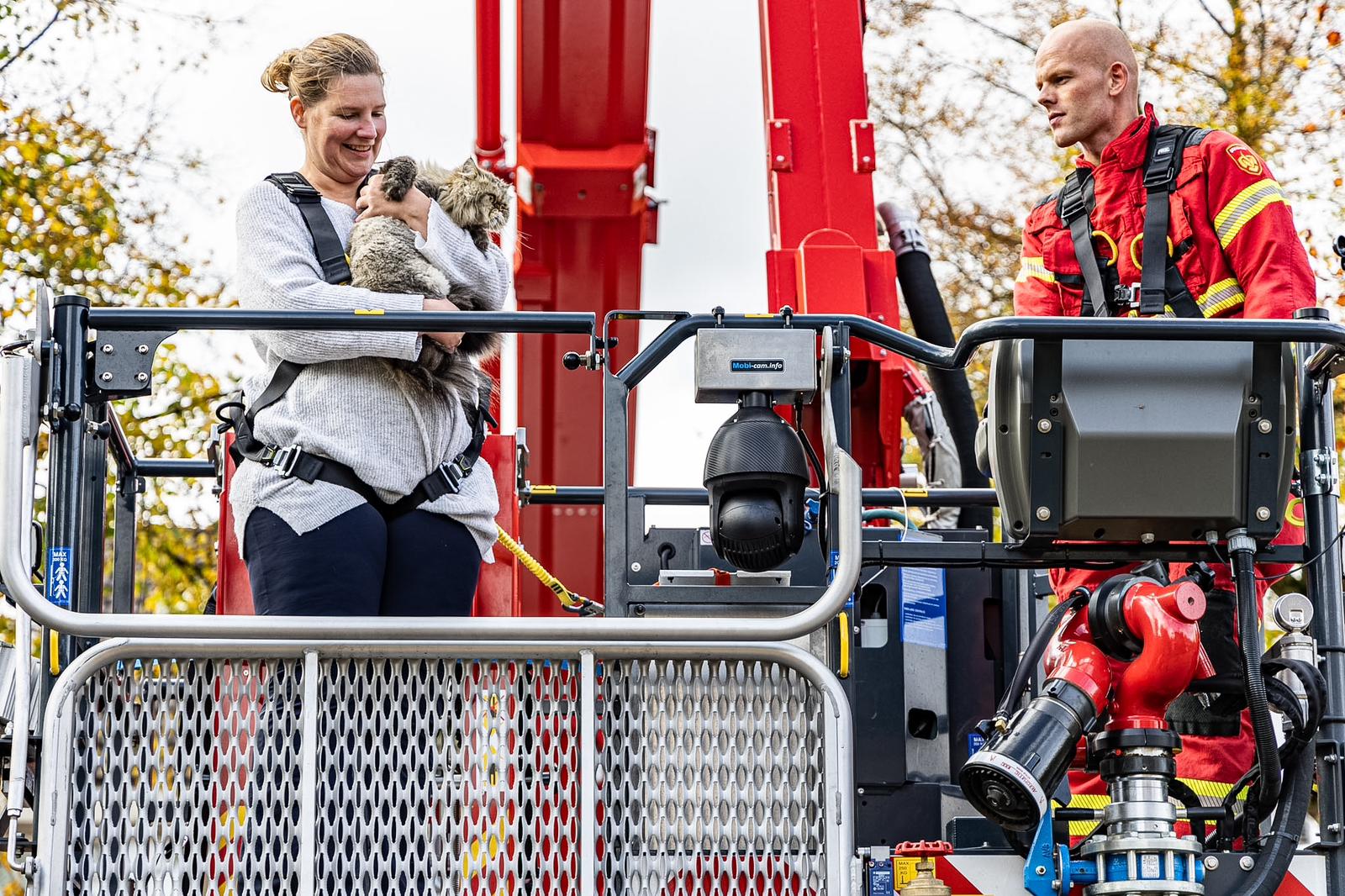 Een eigenaresse heeft zondagmiddag met hulp van brandweerlieden haar kat gered die hoog in een boom aan de Hélène Swarthlaan was geklommen. Dat meldt nieuwsfotograaf Rick ten Cate van tencatefotografie.nl.