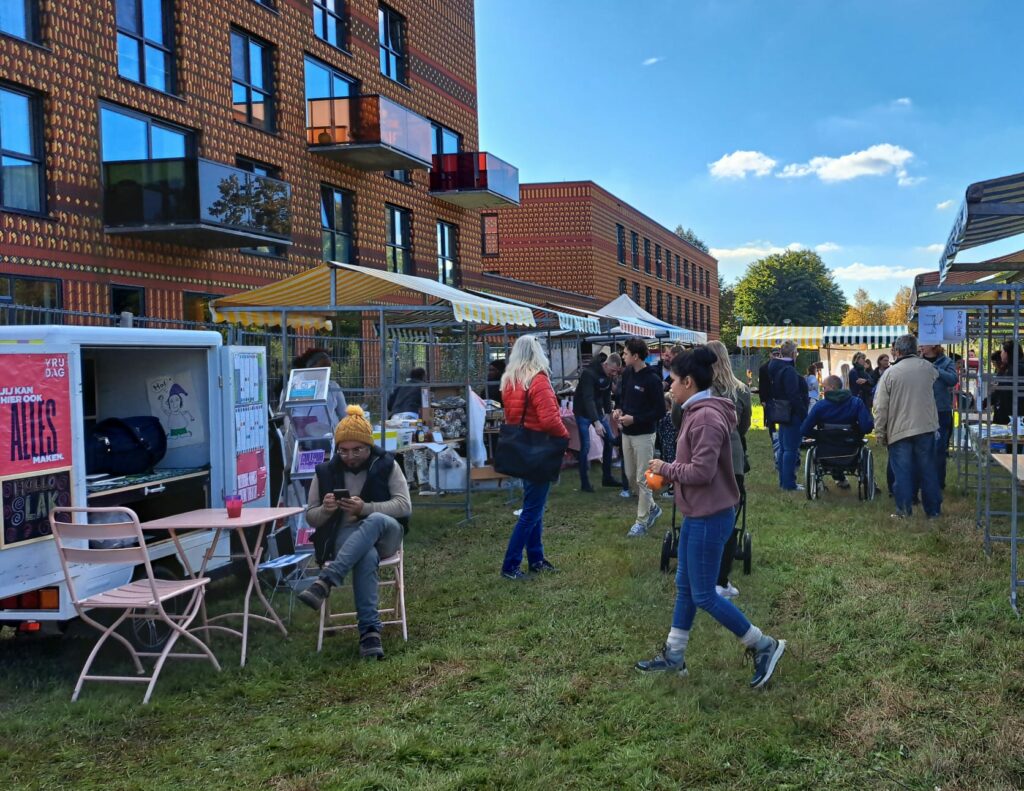 “Klopt. Mensen die het leuk vinden om te koken konden hun gerechten en hapjes presenteren, iemand die helemaal fan is van breien kon haar creaties laten zien, er waren presentaties van diverse projecten die in de wijk plaatsvinden, er was een meezingcafé en de band HoofdPijnHond die uit wijkbewoners bestaat gaf een optreden. Wijkbewoners konden laten zien wie ze zijn, wat ze bezighoudt, waarbij er ondertussen contact kon worden gemaakt. We zijn deze dag nooit ingegaan met het doel om minimaal 1.000 bezoekers te trekken. We hadden als doel dat als het ook maar lukt om één iemand een mooie dag te laten beleven, dat we dan al tevreden zouden zijn. Dat is ruimschoots gelukt.”