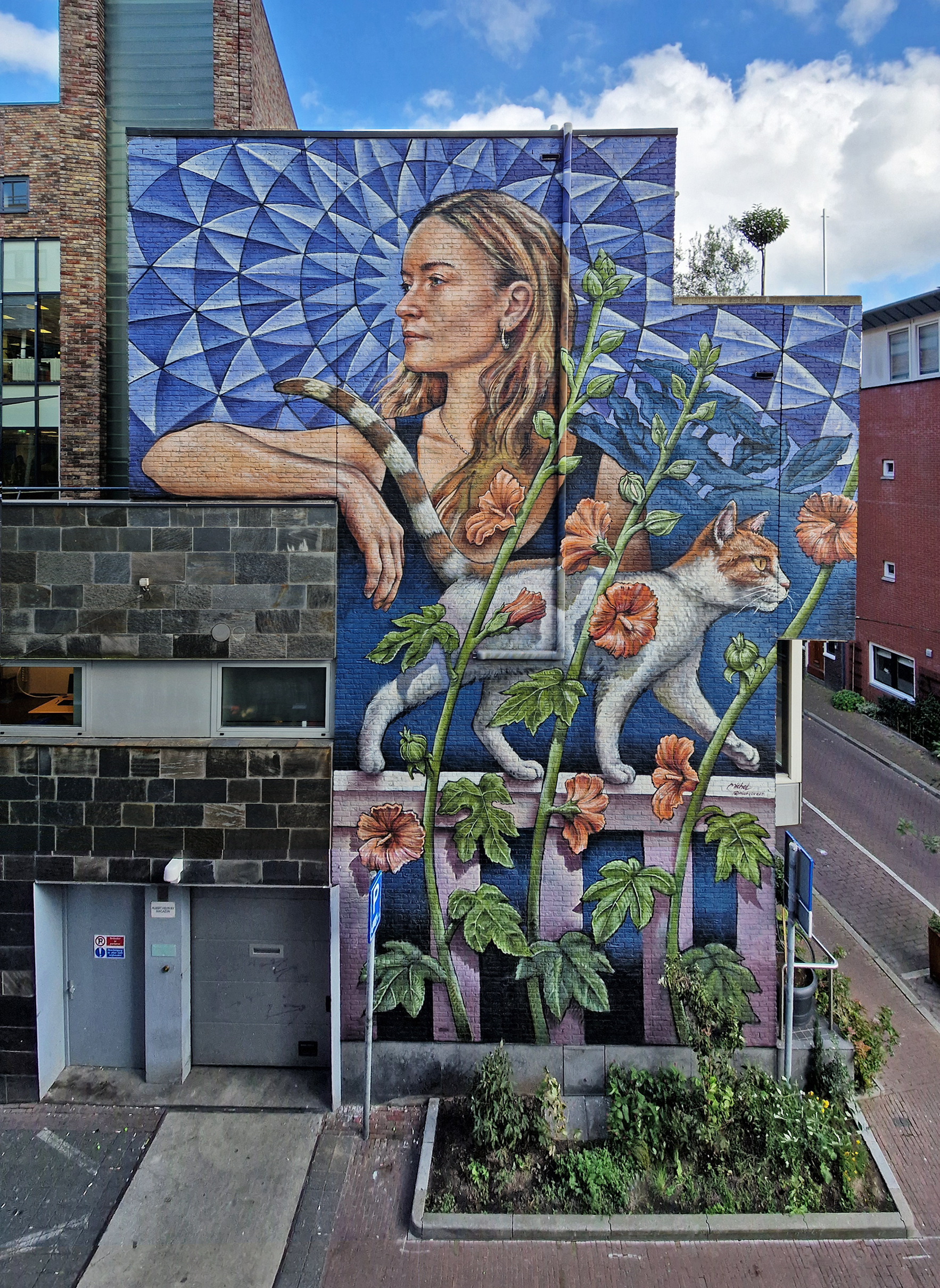 Een nieuwe muurschildering op de hoek van de Prinsenstraat en de Tweede Drift Gedempte Zuiderdiep vormt het sluitstuk van een vergroeningsproject dat door buurtbewoners is opgezet.