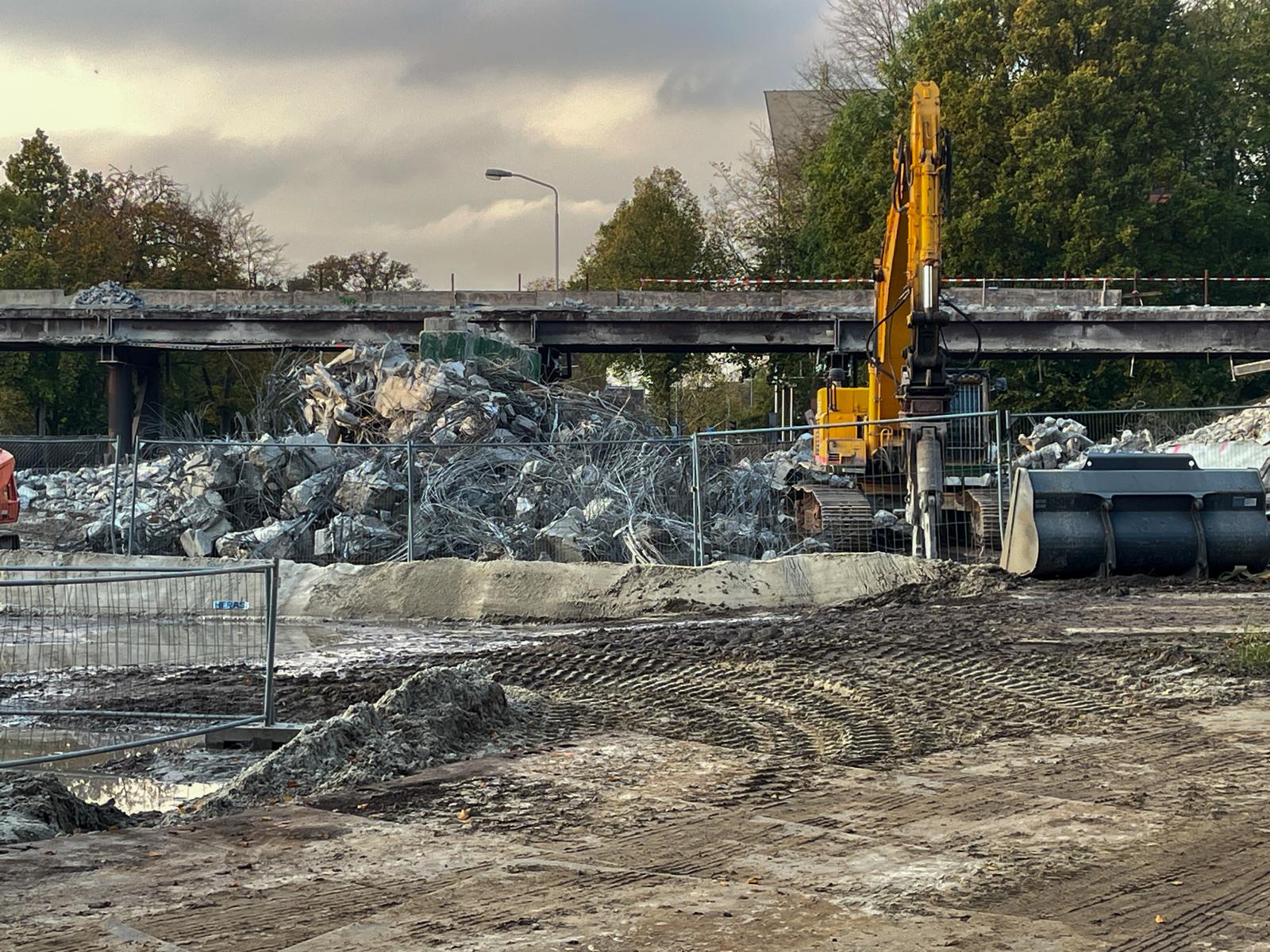 Nog even en het viaduct over de Hereweg is verleden tijd. De afgelopen dagen heeft een aannemer al een flink deel van het viaduct gesloopt.