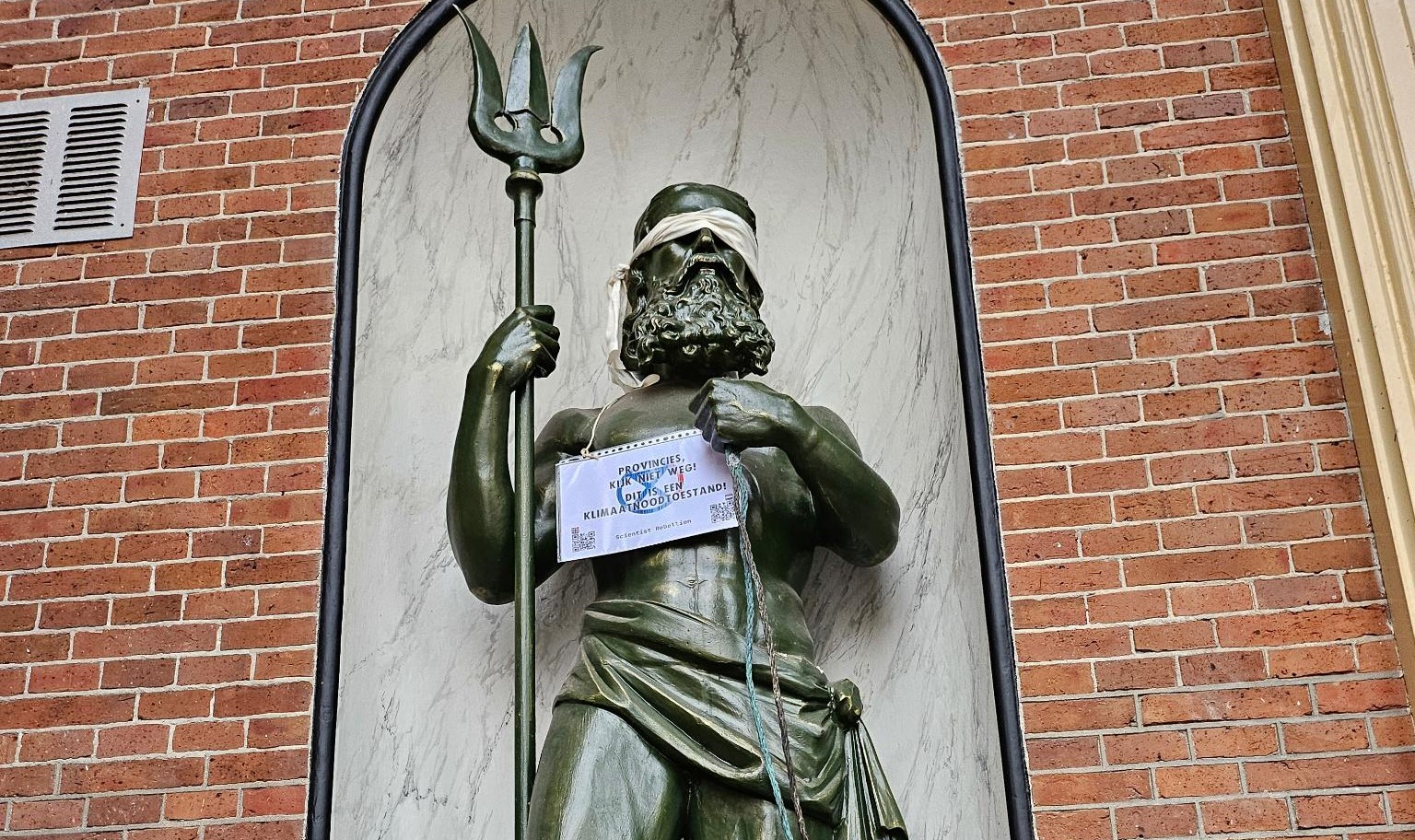 Onder andere het standbeeld Blote Bet op de Herebrug en de beelden bij de Korenbeurs op de Vismarkt bleken zondagochtend een blinddoek te dragen. “Met deze actie slaan we als wetenschappers opnieuw alarm omdat de overheid geen adequate maatregelen neemt tegen de klimaatcrisis”, laat een woordvoerder weten. “Deze keer roepen we de provinciebesturen op om rigoureuze maatregelen te nemen. Onderzoek van Elke Tiende Graad Telt laat zien dat we het doel om onder de 1,5 graden opwarming te blijven met het huidige beleid ruimschoots gaan overschrijden, terwijl elke tiende graad telt.”