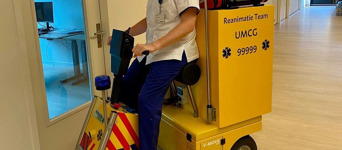 Na een jaar brainstormen en testen heeft het reanimatieteam van het UMCG nu een eigen mini-ambulance, waarmee ze snel overal in het ziekenhuis kunnen zijn om patiënten in nood te helpen.