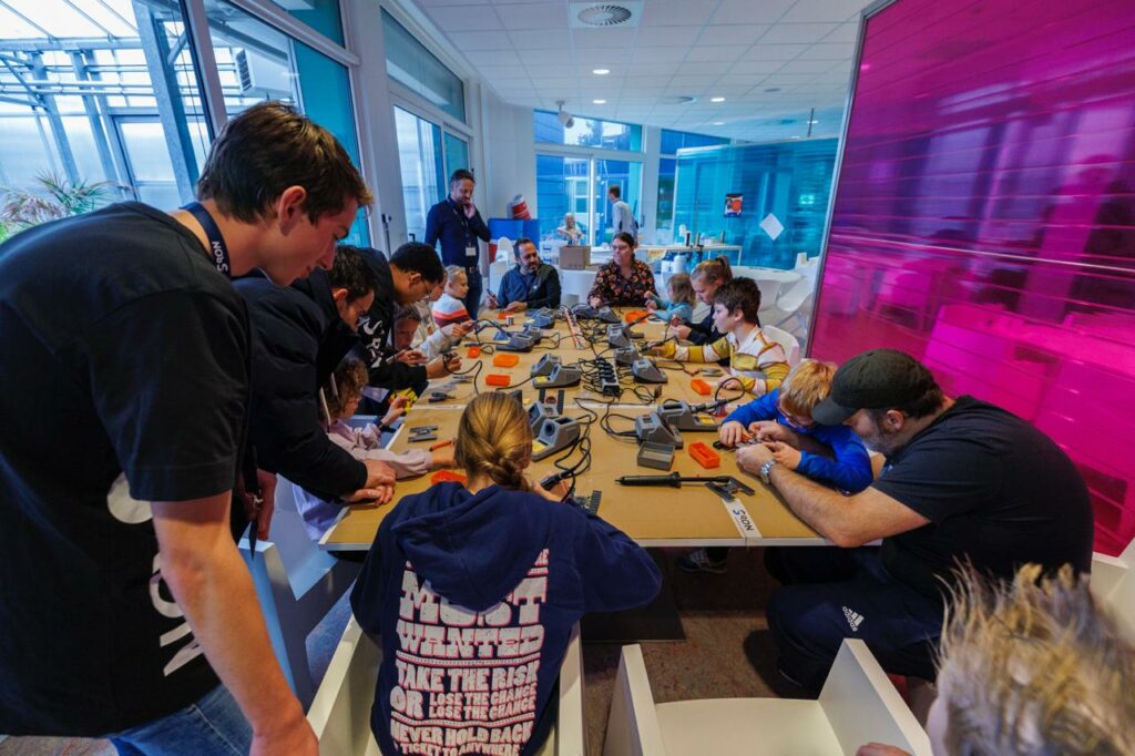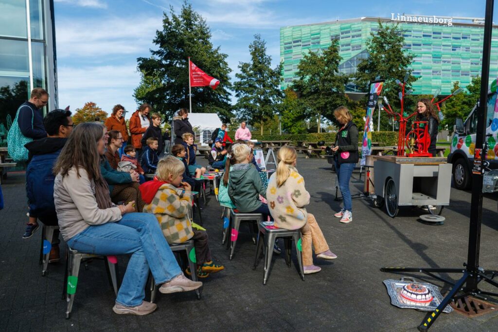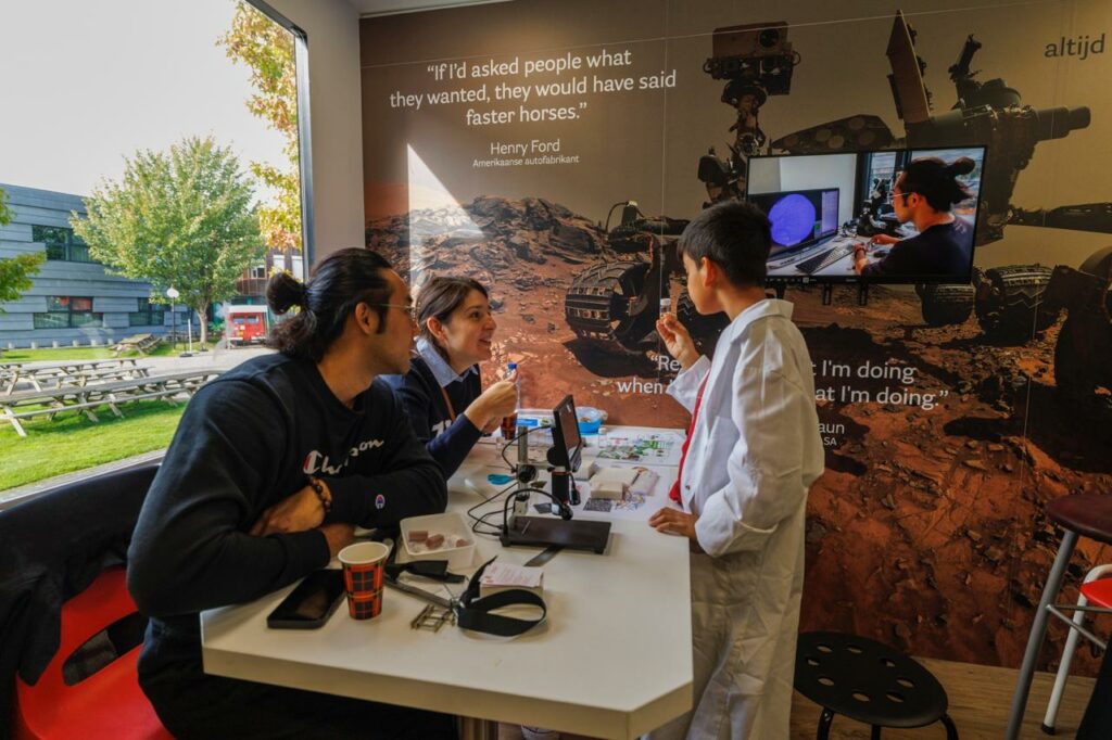 “Het is van jong tot oud. Kinderen die met hun ouders of opa’s en oma’s langskomen. Maar ook oudere mensen die even nieuwsgierig kwamen kijken. In totaal ging het om meer dan honderd activiteiten als proefjes, een kijkje achter de schermen, mini-lezingen, films en nog veel meer. En je komt hele mooie situaties tegen. Vanmiddag stormde een jongetje een ruimte binnen. Zo snel als hij kwam zo snel was hij ook weer weg. Hij zei, ik hoor alleen maar Engels. Ik ben op zoek naar mensen die Nederlands kunnen spreken. Hem heb ik gekoppeld aan een student in de ruimte die Nederlands sprak. Ze hebben een prachtige middag gehad. Dat is toch mooi?”