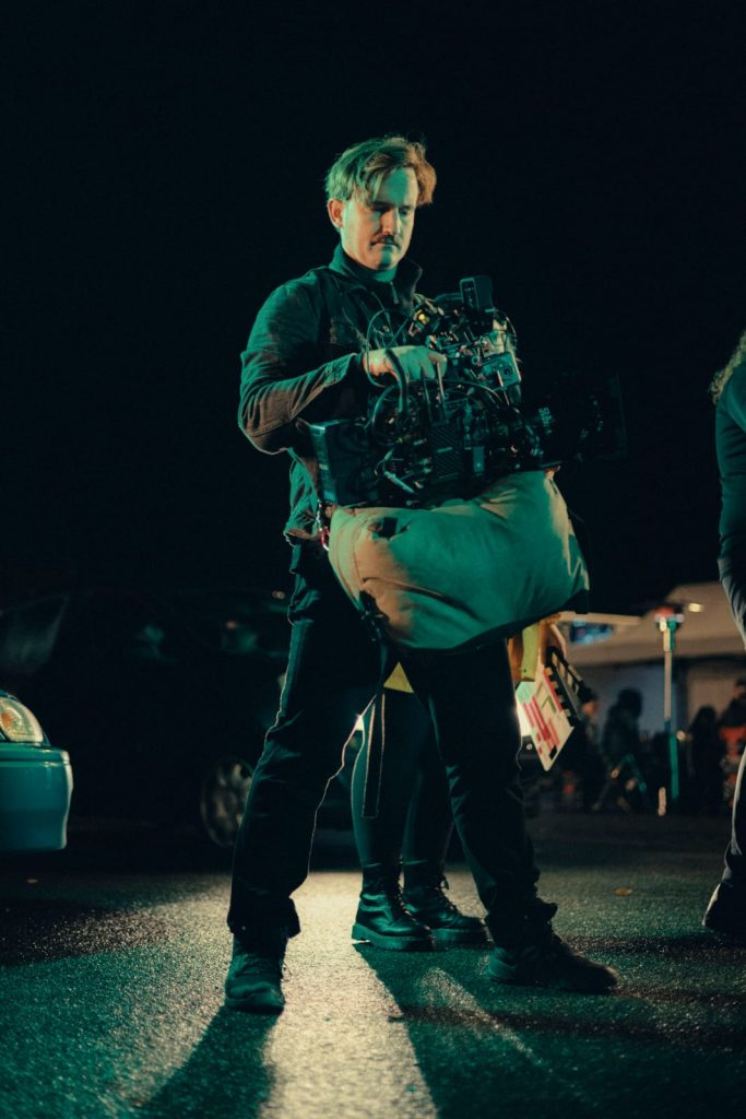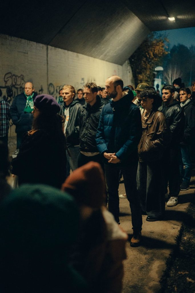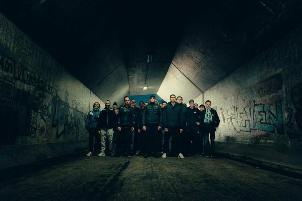 “Eigenlijk waren we daar wel heel blij mee. De regen zorgt namelijk voor een dramatisch effect dat we ook zochten. Het lopen naar de Euroborg is de openingsscène van de film. Door de regen hebben we een hele sterke opening neer kunnen zetten. We hebben bijvoorbeeld heel mooi de silhouetten van de supporters, die zichtbaar zijn op het natte asfalt, heel mooi in beeld kunnen brengen. Voor de figuranten was de regen minder prettig. Maar samen zingen houdt je warm. Zo is ‘De groene hel, die staat in brand’ bijvoorbeeld gezongen. Dat is indrukwekkend.”