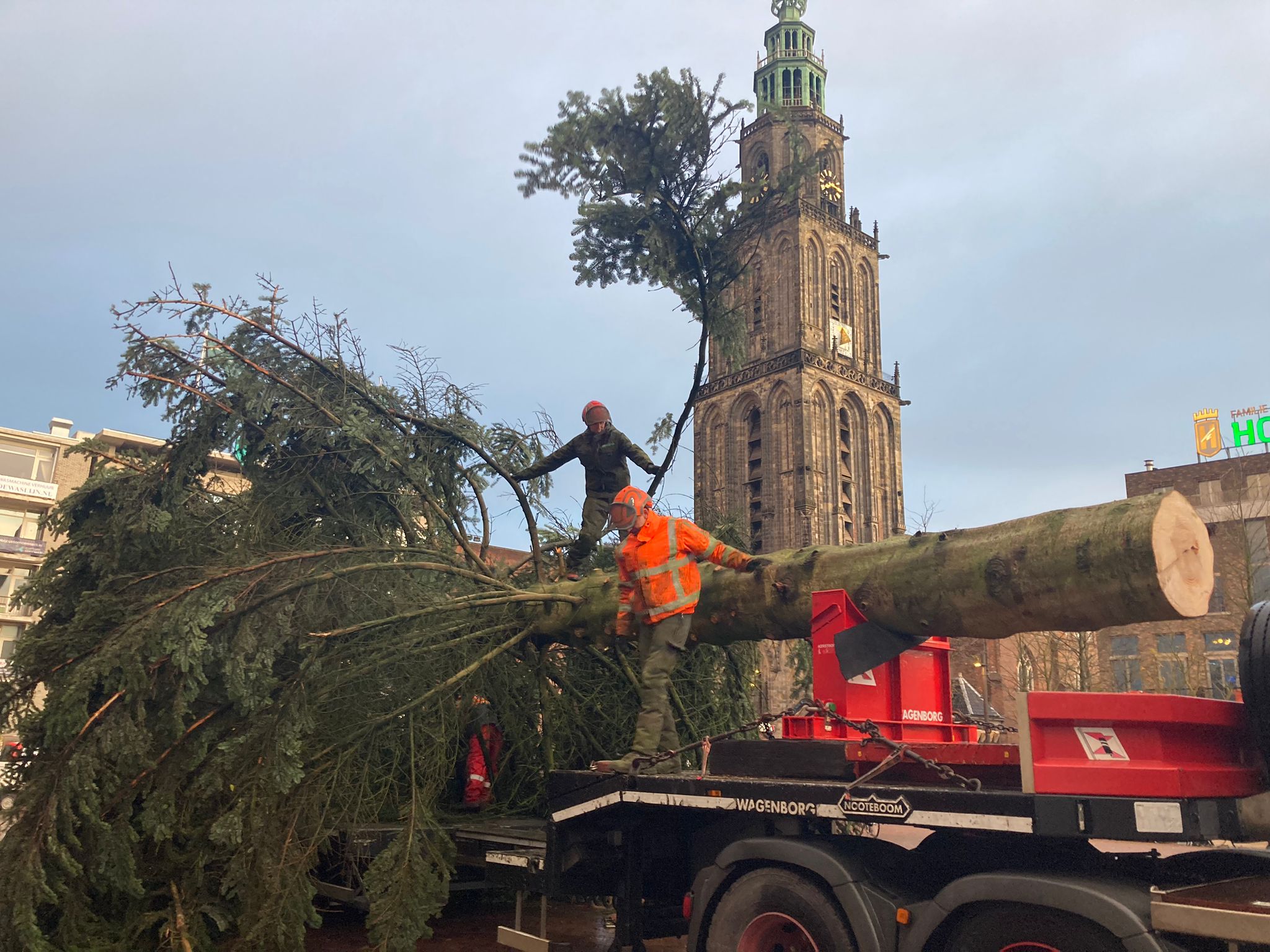 Ook op de Nieuwe Markt en in Ten Boer komen kerstbomen te staan. De bomen worden op 6 januari weggehaald.
