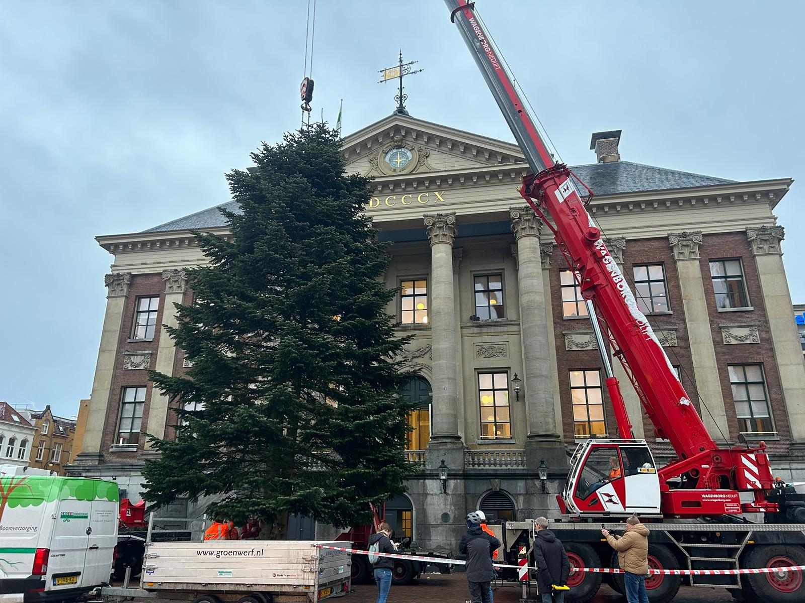Afgelopen jaren werd de boom begin december op de Grote Markt neergezet. “Dit jaar doen we dat wat eerder”, laat Louis van der Tuin weten. “Dit heeft te maken met het evenement Wintergoud.” Van 6 december tot en met 5 januari vind je op de Grote Markt een overdekte ijsbaan, een wintercafé en een reuzenrad. Echter moet dit evenement ook opgebouwd worden. Daarom is er voor gekozen om de kerstboom op woensdag 20 november te plaatsen. Op dezelfde dag wordt ook begonnen met het plaatsen van de lampjes en het ophangen van de ballen. Op vrijdag moet deze klus klaar zijn. De lampjes zullen voor het eerst branden bij de start van Wintergoud op 6 december.