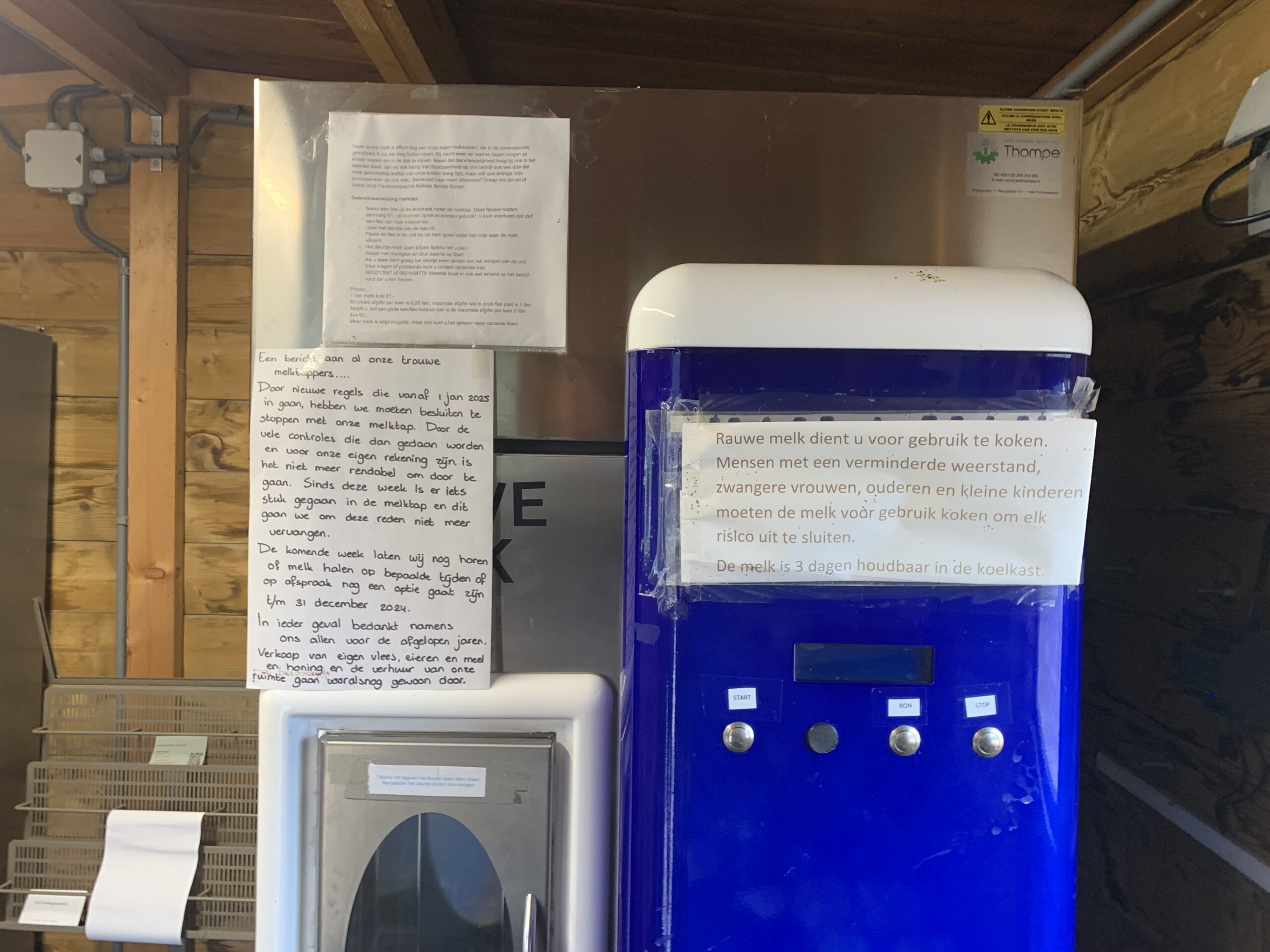 “De landelijke overheid is met nieuwe regels gekomen voor de melktappunten. Deze regels worden volgend jaar van kracht. De bedoeling is dat er twaalf keer per jaar door een controleur gecontroleerd gaat worden op de aanwezigheid van de E.coli-bacterie en salmonella in de melk. En op zich vind ik dat in de basis niet verkeerd. Alleen gaan mij deze controles 350 tot 400 euro per jaar kosten. Omdat we op dit moment nagenoeg geen winst maken met het tappunt, hebben we besloten om er mee te stoppen. En persoonlijk vind ik dat jammer.”