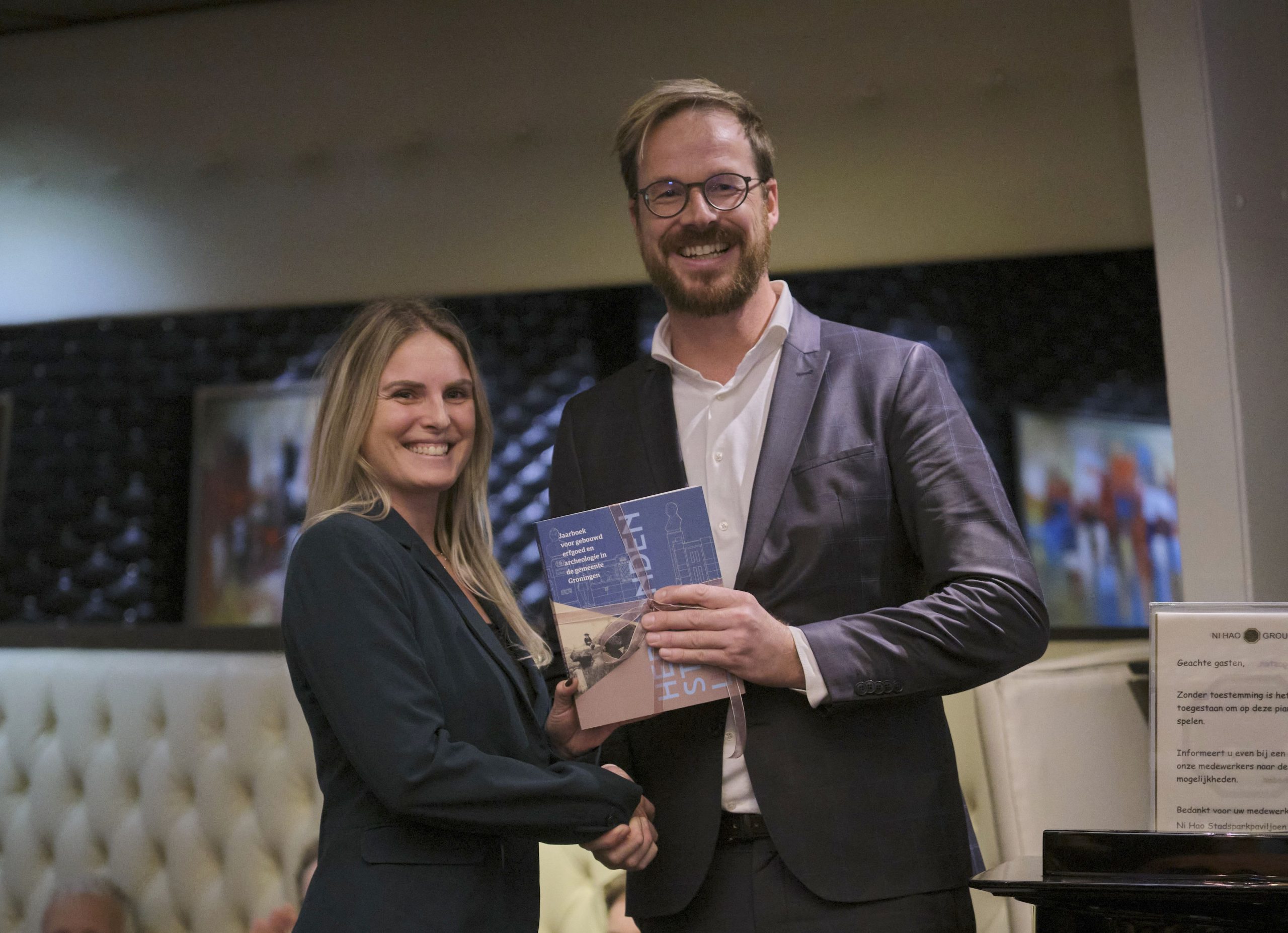 Wethouder Rik van Niejenhuis overhandigde het eerste exemplaar aan Linda de Theije, programmaleider bij Landschapsbeheer Groningen. De Theije zet zich in voor het behoud en herstel van het Groningse cultuurlandschap en benadrukte het belang van erfgoed voor de regio.