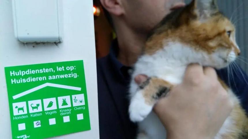 De stickers zijn bedoeld voor op de voordeur of in de meterkast. Ze laten de hulpdiensten weten dat er dieren in huis zijn, mocht er brand uitbreken. Groningen volgt daarmee andere steden, waaronder Rotterdam.