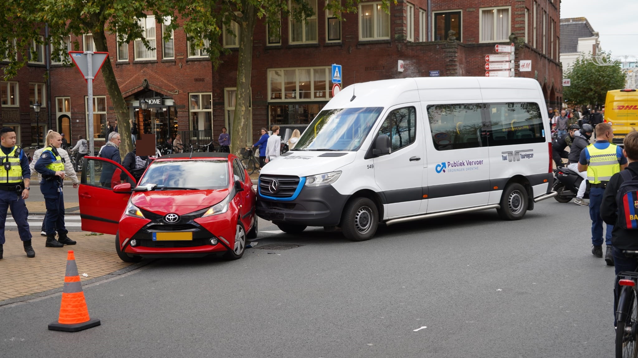 Bij een verkeersongeluk zaterdagmiddag op het Gedempte Zuiderdiep is de bestuurder van taxibusje op een personenauto gebotst. Dat meldt nieuwsfotograaf Patrick Wind van 112groningen.nl.