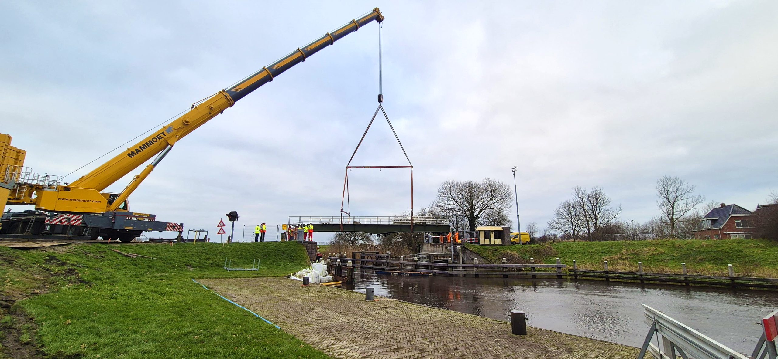 De brug over het Reitdiep bij Wierumerschouw is dinsdagochtend teruggeplaatst.