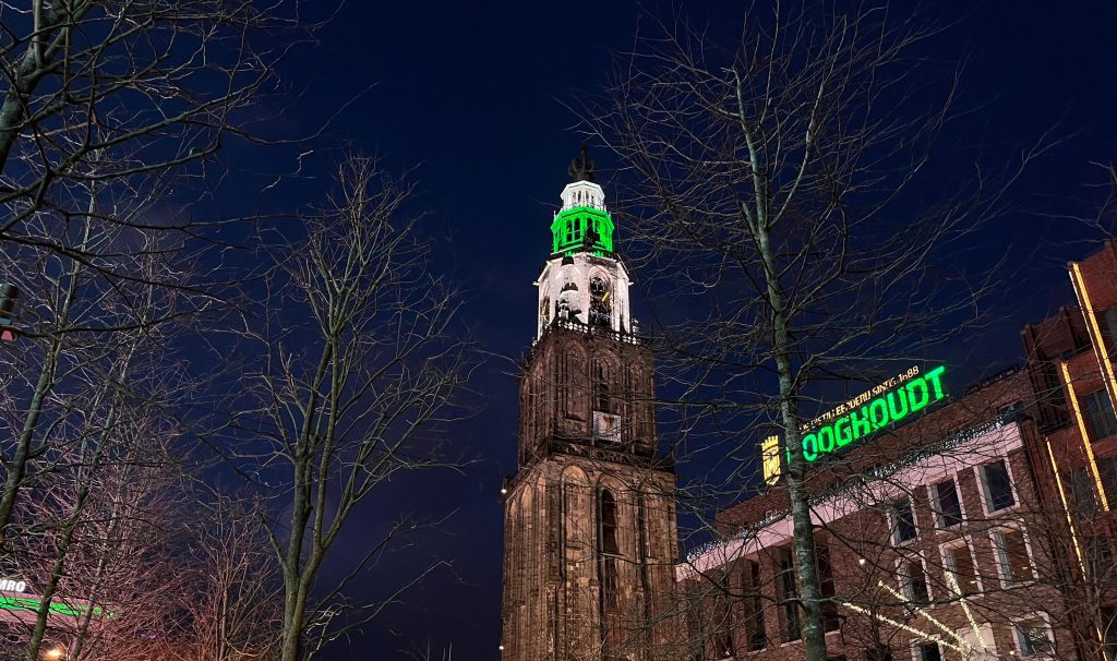 De verlichting van de Martinitoren blijft tot Eurosonic Noorderslag aan.