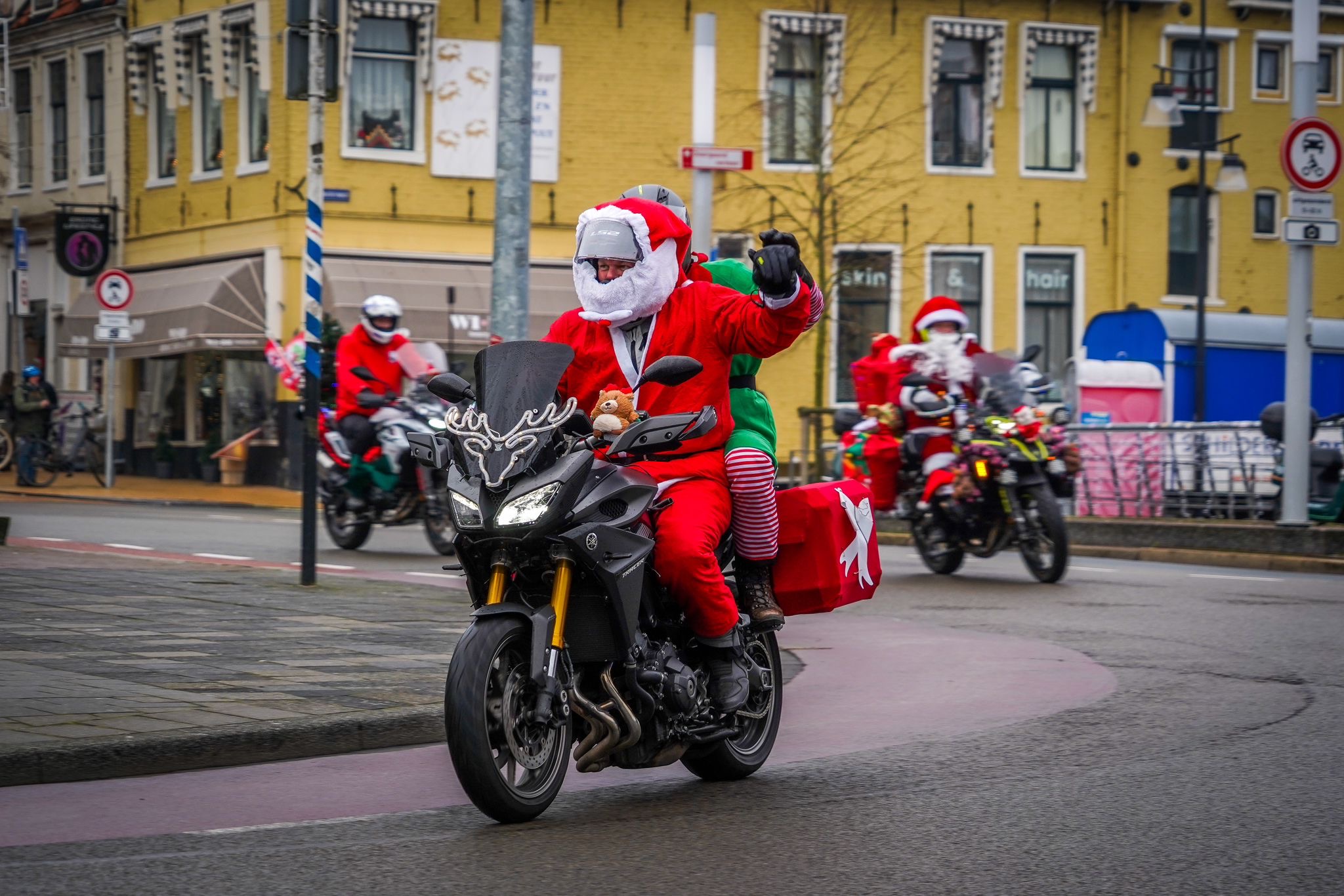 Kerstmannen en -vrouwen reden zaterdagochtend door de stad met motoren. Het is een landelijke actie om geld op te halen voor kinderen met kanker in het Prinses Máxima Centrum in Utrecht.