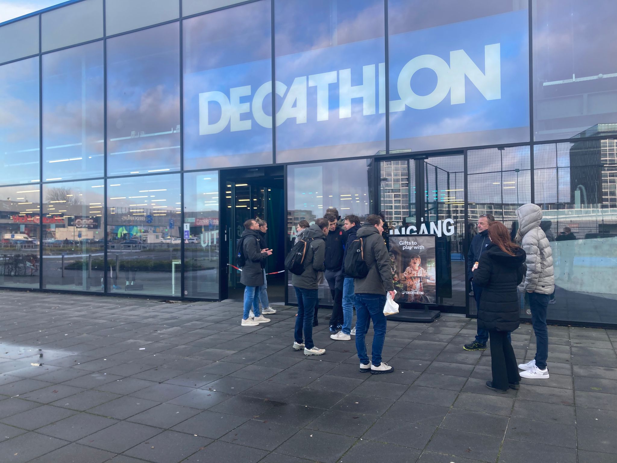 Er zijn scheuren ontstaan in de muur tussen de sportwinkel Decathlon en de woonwinkel Kwantum.