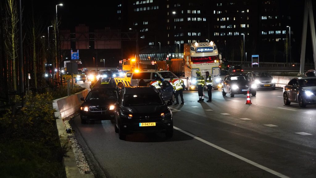 Het verkeer reed nog langzaam door een botsing die eerder in de middag plaatsvond, precies op dezelfde plek. Nu zijn er twee rijstroken afgesloten en files ontstaan.