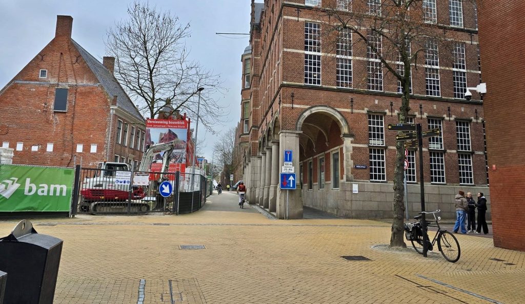 Het gaat om het deel tussen de Schoolstraat en de Popkenstraat, waar wordt gebouwd voor het nieuwe gebouw van VRIJDAG. De afsluitingen duren op werkdagen tot 19:00 uur. Voetgangers kunnen wel langs de werkzaamheden, via het voetpad naast het provinciehuis. Bromfietsers en fietsers moeten omrijden via de Singelstraat en het Martinikerkhof.