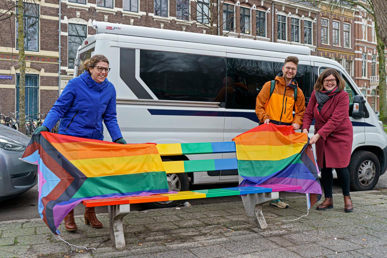 Ter gelegenheid van Paarse Vrijdag is de vrijdagmiddag een regenboogstadswandeling in Groningen gelanceerd. Tegelijk werd een nieuw regenboogbankje onthuld bij de Museumbrug.
