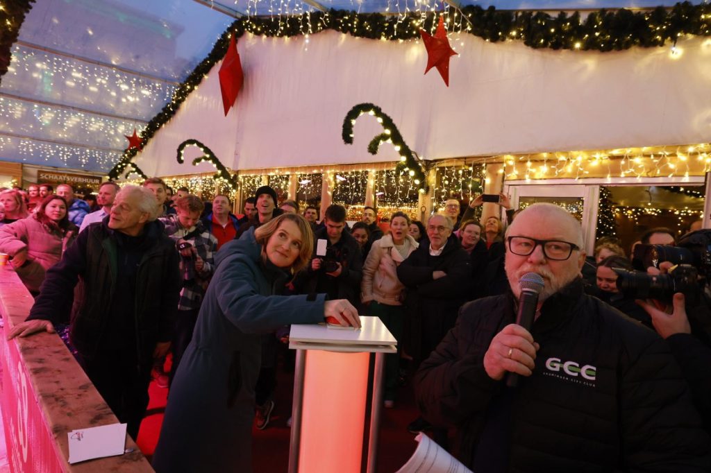 “Dat is spannend. Absoluut. Maar het kwam gisteravond allemaal bij elkaar. De ijsbaan, die ontzettend mooi verlicht is. Maar ook het reuzenrad. Niet zomaar een reuzenrad, maar een attractie die de vergelijking kan doorstaan met wat er in Düsseldorf staat. Ik werd er gisteravond heel vrolijk van. En dat hoorde ik ook om mij heen. Het was druk, maar ik hoorde ook veel positieve geluiden. Een mooi evenement in het hart van de stad. Waarbij wij als Groningen City Club trots zijn op de samenwerking, maar ook trots zijn op de mensen die de uitdaging zijn aangegaan, ondanks alle risico’s die er ook bij horen.”