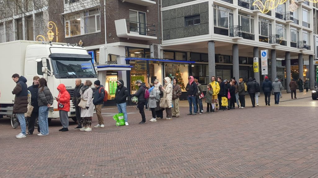 Om elf uur was de wachttijd op de Grote Markt al zeker een kwartier. Tegen het middaguur moest er tussen de 25 en 45 minuten gewacht worden, totdat klanten aan de beurt waren om te bestellen. Tot in de Oude Ebbingestraat stonden mensen te wachten om bollen te bestellen.