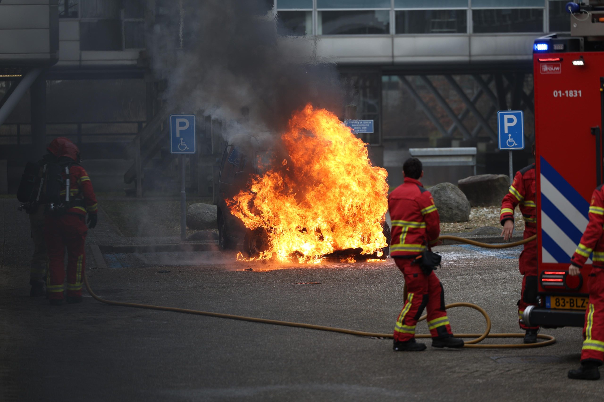 Op het terrein van het politiebureau aan de Van Swietenlaan heeft zaterdagmiddag brand gewoed in een geparkeerde personenauto. Dat meldt nieuwsfotograaf Rick ten Cate van tencatefotografie.nl.