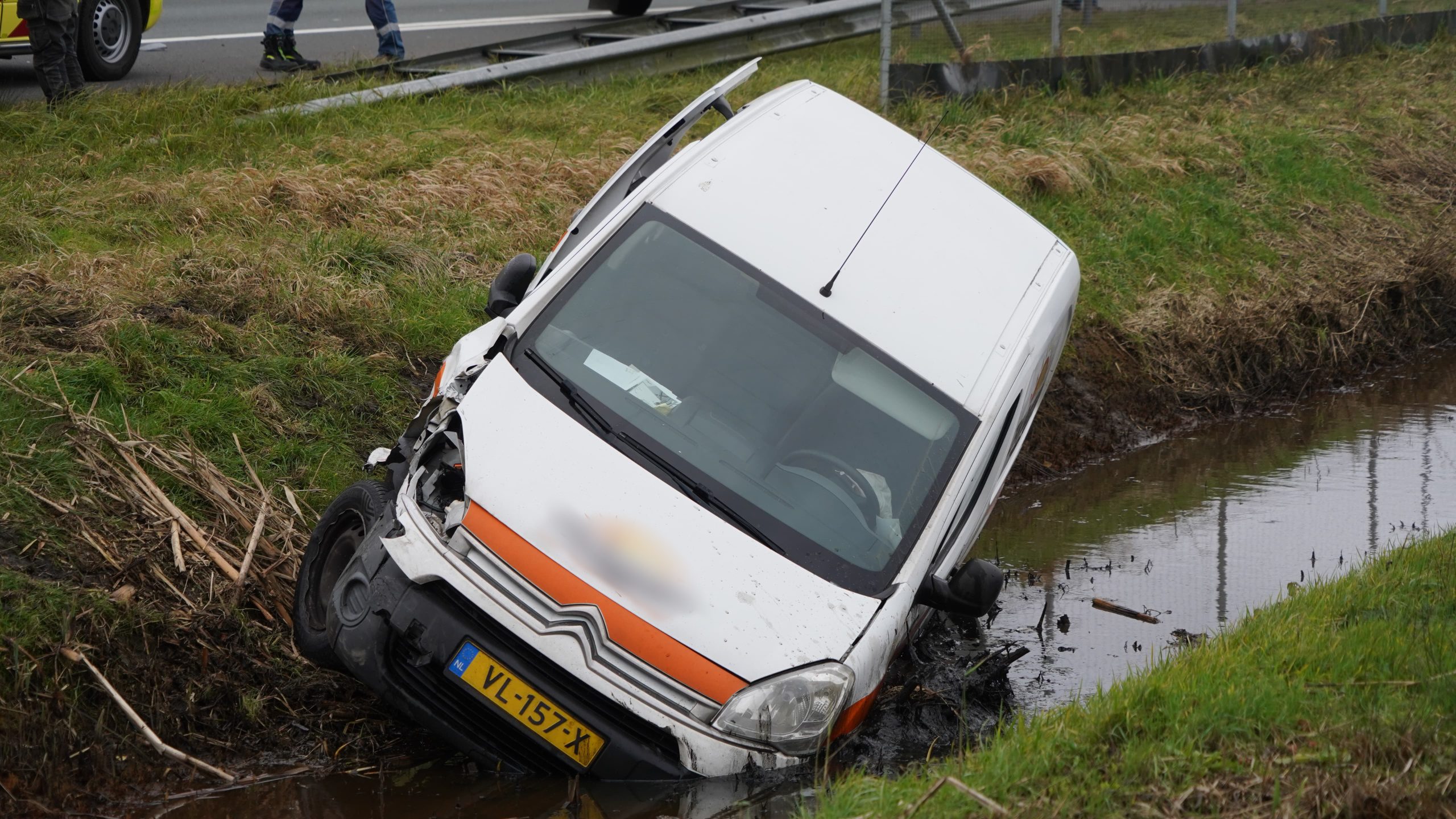 Op de A7, vlak voor knooppunt Westerbroek in Groningen, is dinsdagmiddag een busje in de sloot beland na een aanrijding op de snelweg.