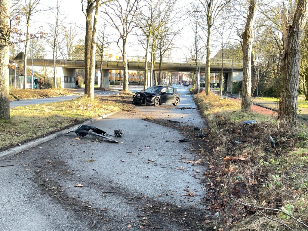Het ongeluk gebeurde rond 13.30 uur ter hoogte van het spoorwegviaduct tussen de kruising met de Iepenlaan en de Johan van Oldenbarneveltlaan. De bestuurder reed in de richting van de Asingastraat. Door nog onbekende oorzaak vloog de automobilist uit de bocht en knalde op een boom. De auto kwam vervolgens overdwars op het wegdek tot stilstand.