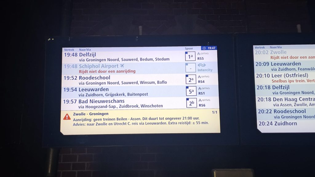 Treinreizigers tussen Groningen en Assen hebben dinsdagavond te maken gehad met vertraging. Vanwege een aanrijding was er enige tijd geen treinverkeer mogelijk tussen de provinciehoofdsteden.