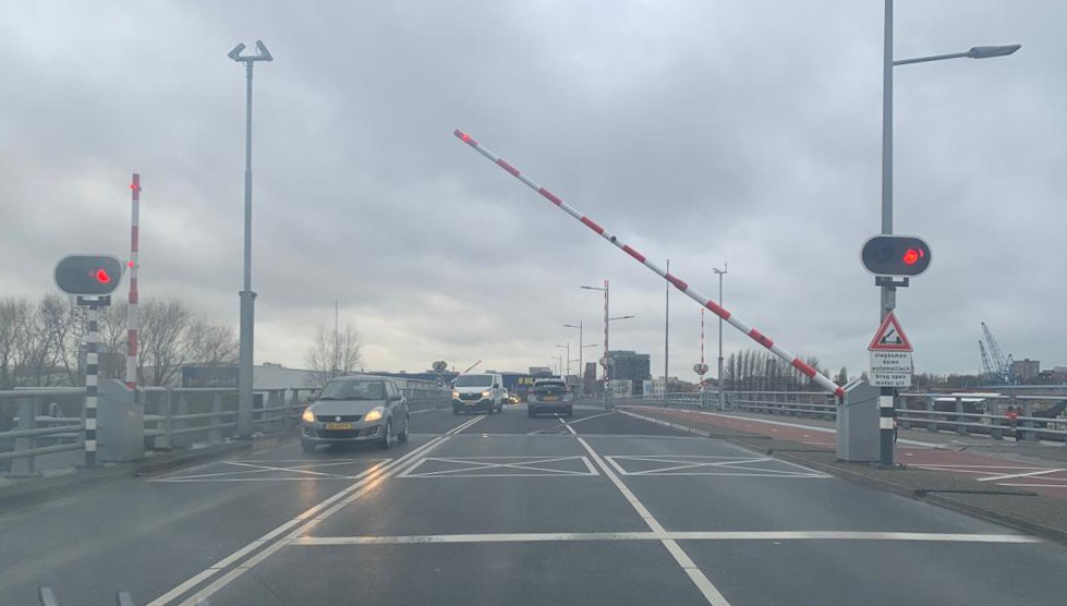 De twee brugdelen stonden van vijf uur tot kort voor zessen recht omhoog. Daardoor ontstonden files op onder andere de Sontweg, Sint Petersburgweg, Ring Zuid en de opritten naar Ring Zuid.