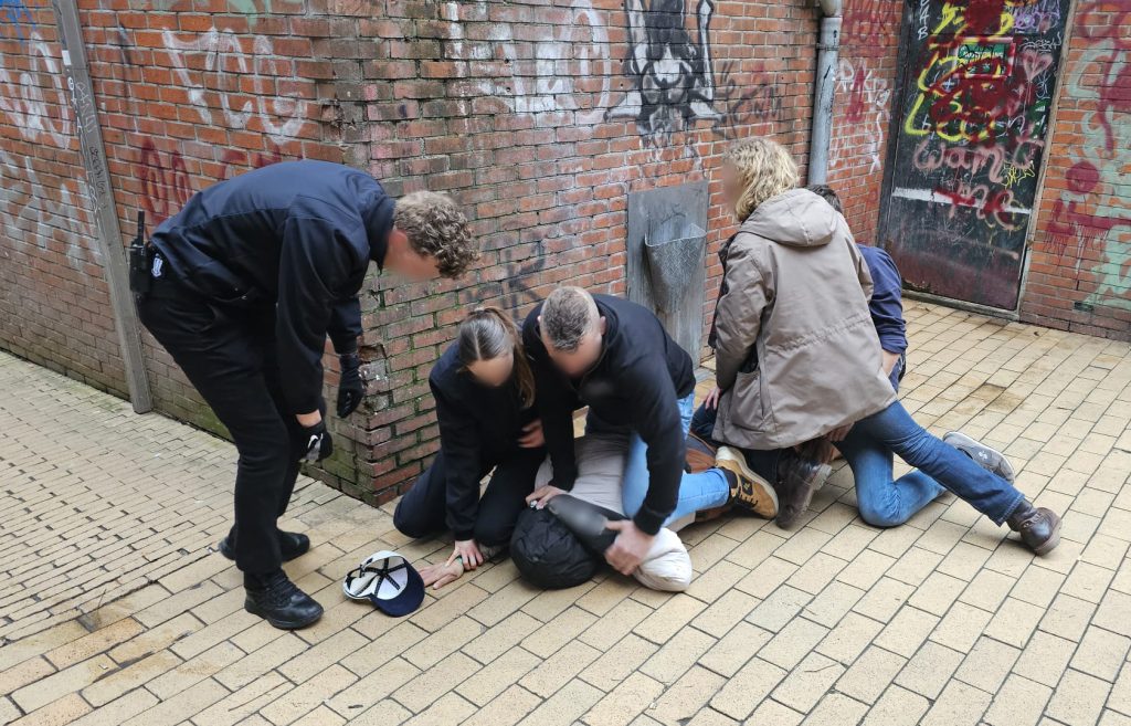 De vermeende dief, die samen met een compagnon kleding zou hebben gestolen uit de Zara in de Herestraat, zette het met de andere verdachte op een lopen. Na een korte achtervolging wisten winkelbeveiligers de dief in de kraag te vatten.