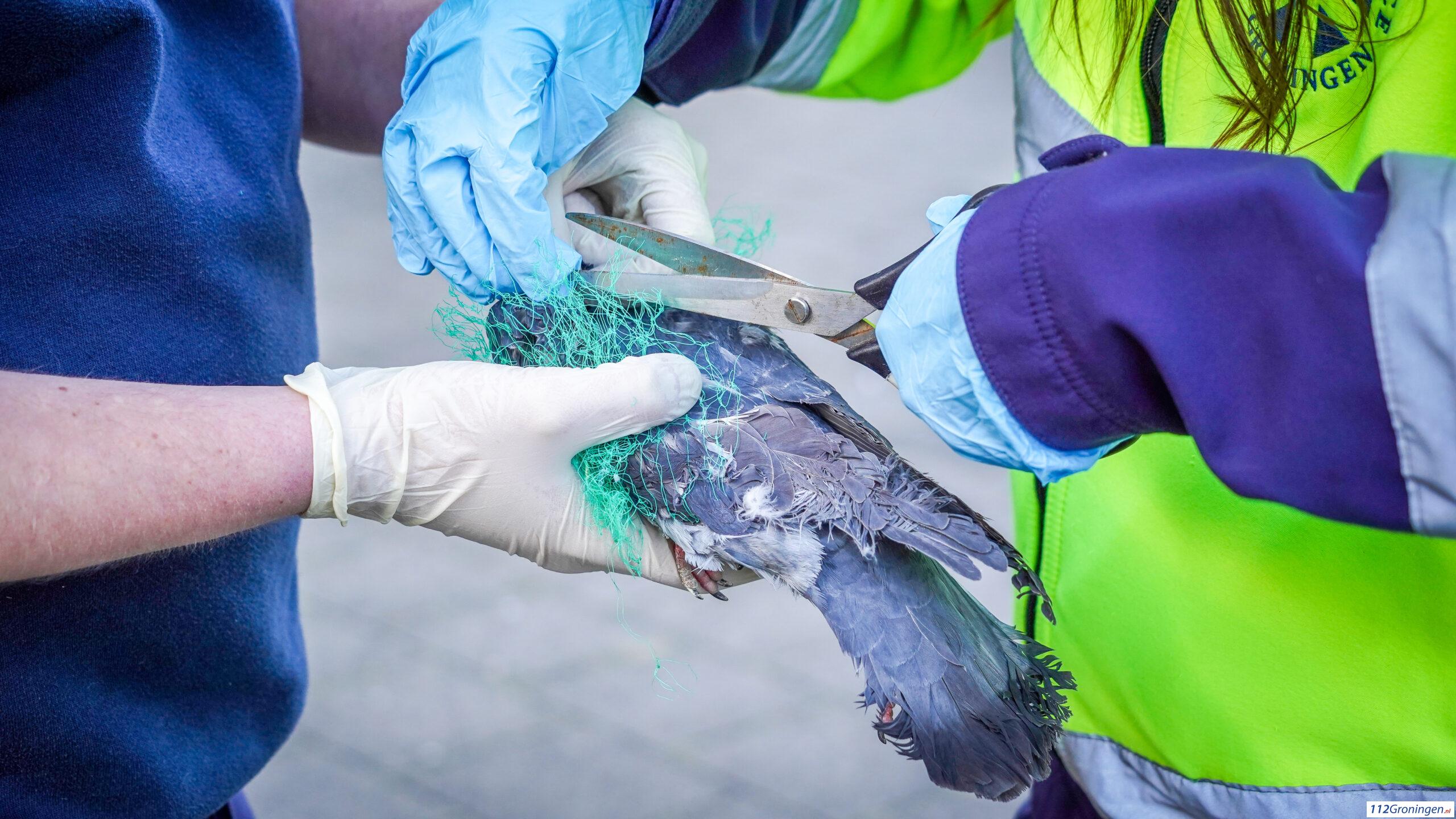 Op de Bedumerweg heeft de brandweer woensdagmiddag een duif bevrijdt uit een benarde situatie.
