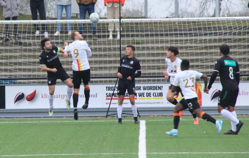 Foto Andor Heij. Be Quick - Velocitas. Geertjan Liewes, die drie keer scoorde, komt het hoogst.
