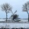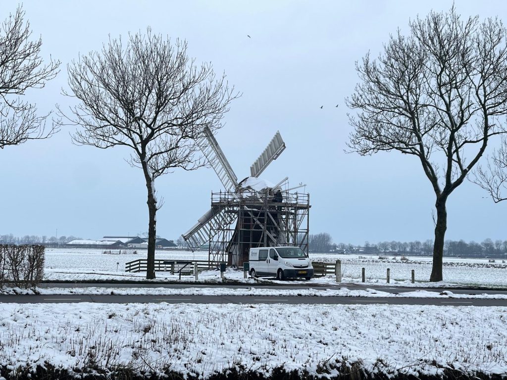 Poldermolen ’t Witte Lam aan de Groningerweg bij Beijum staat momenteel in de steigers. Aan de molen wordt onderhoud uitgevoerd.