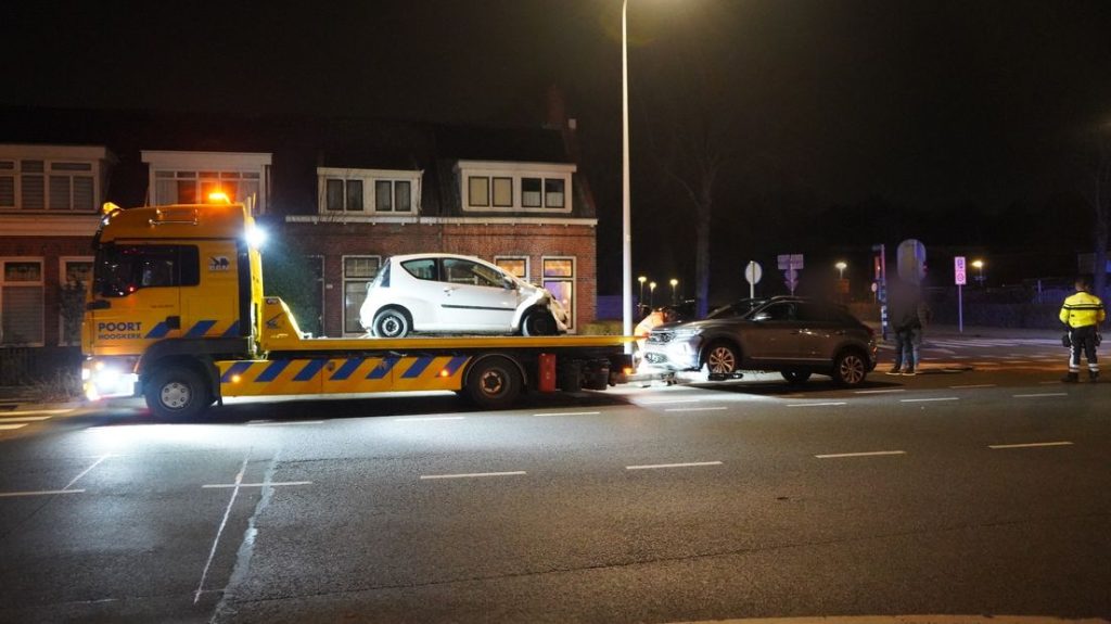 Maandagavond zijn twee auto’s op elkaar gebotst op de kruising van het Damsterdiep en de Oliemuldersweg. Er vielen geen gewonden, aldus een aanwezige persfotograaf.