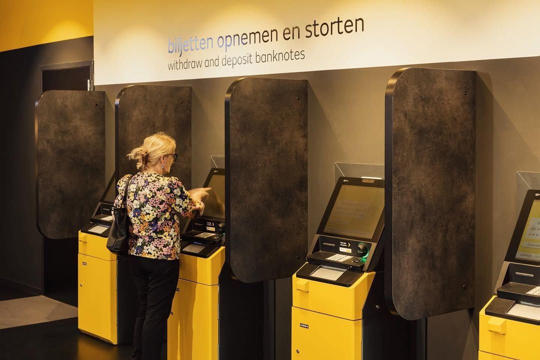 “In de winkels staat altijd één automaat zoals aan de gevel, met veel capaciteit. Daarnaast komen er vijf kleinere automaten voor opnemen en storten. Ook komt er vrijwel altijd een automaat voor zakelijk storten, waar winkeliers hun dagopbrengst naartoe kunnen brengen. Ook staat er meestal een automaat voor het storten van munten.”