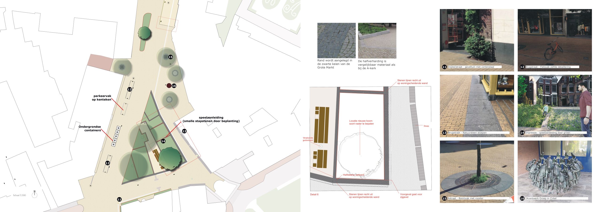 Het Sint Walburgpleintje, dat nu vooral verhard is, verandert in een groene rustplek. Er komt een grote nieuwe boom, gevarieerde beplanting en bankjes om even uit te rusten. Ook kinderen kunnen hier spelen, dankzij speelse stapstenen en een veilige, autoluwe omgeving.