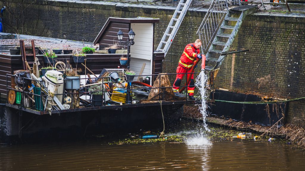 De brandweer kreeg rond 10.00 uur een melding binnen dat er problemen waren op de boot. Daarop werd een tankautospuit naar de locatie gestuurd. “Brandweerlieden hebben een deur uit de woonboot gehaald om toegang te krijgen”, vertelt een nieuwsfotograaf. “Vervolgens heeft men met behulp van slangen en een pomp het water uit de woonboot gepompt.” Hoe groot de schade is, is onbekend.