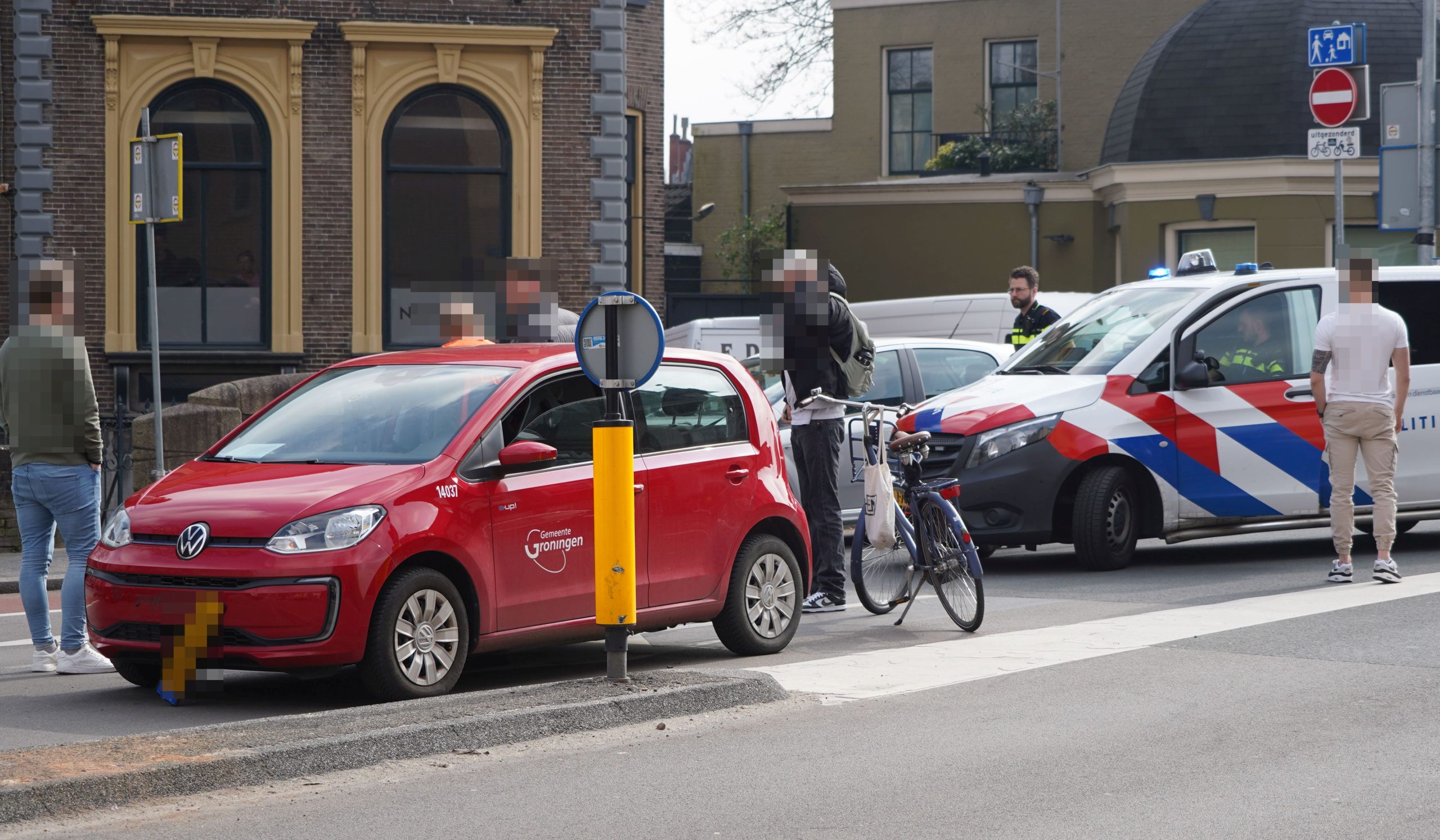 Op de Hereweg, vlak voor de verkeerslichten met de Stationsweg en het Zuiderpark, vond rond het middaguur een aanrijding plaats tussen een auto van de gemeente Groningen en een fietser.