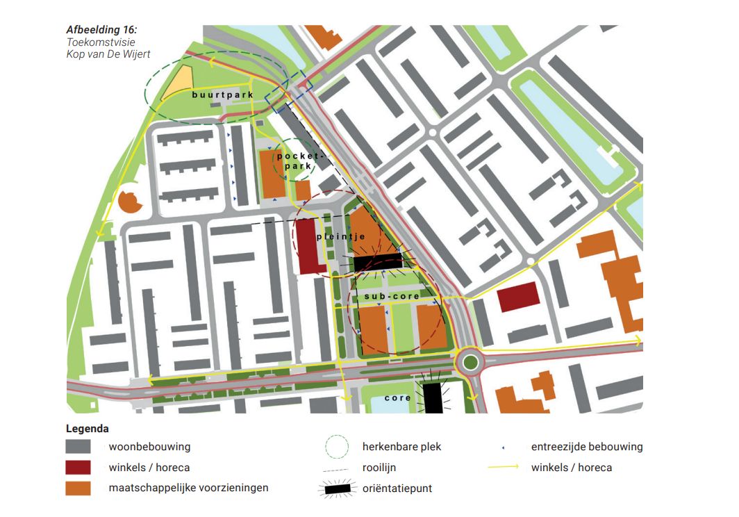 De echte ‘Kop van De Wijert’, het grasveld (met pannakooi) tussen de Brailleweg en de Van Eedenstraat, stond op de rol om ook bebouwd te worden. Maar dat past volgens het college niet bij het verkeer zoals dat nu loopt. Daarom is de gemeente van plan er een mini-parkje met meer sport- en spelvoorzieningen te bouwen. Daarnaast zouden er meer bomen kunnen komen.