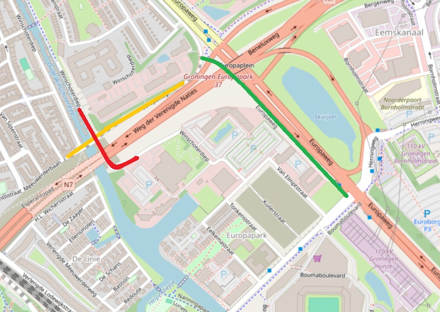 Weggebruikers kunnen gedurende de werkzaamheden geen gebruik maken van de weg. Fietsers en auto’s kunnen het Europapark bereiken via de Europaweg en de Boumaboulevard.