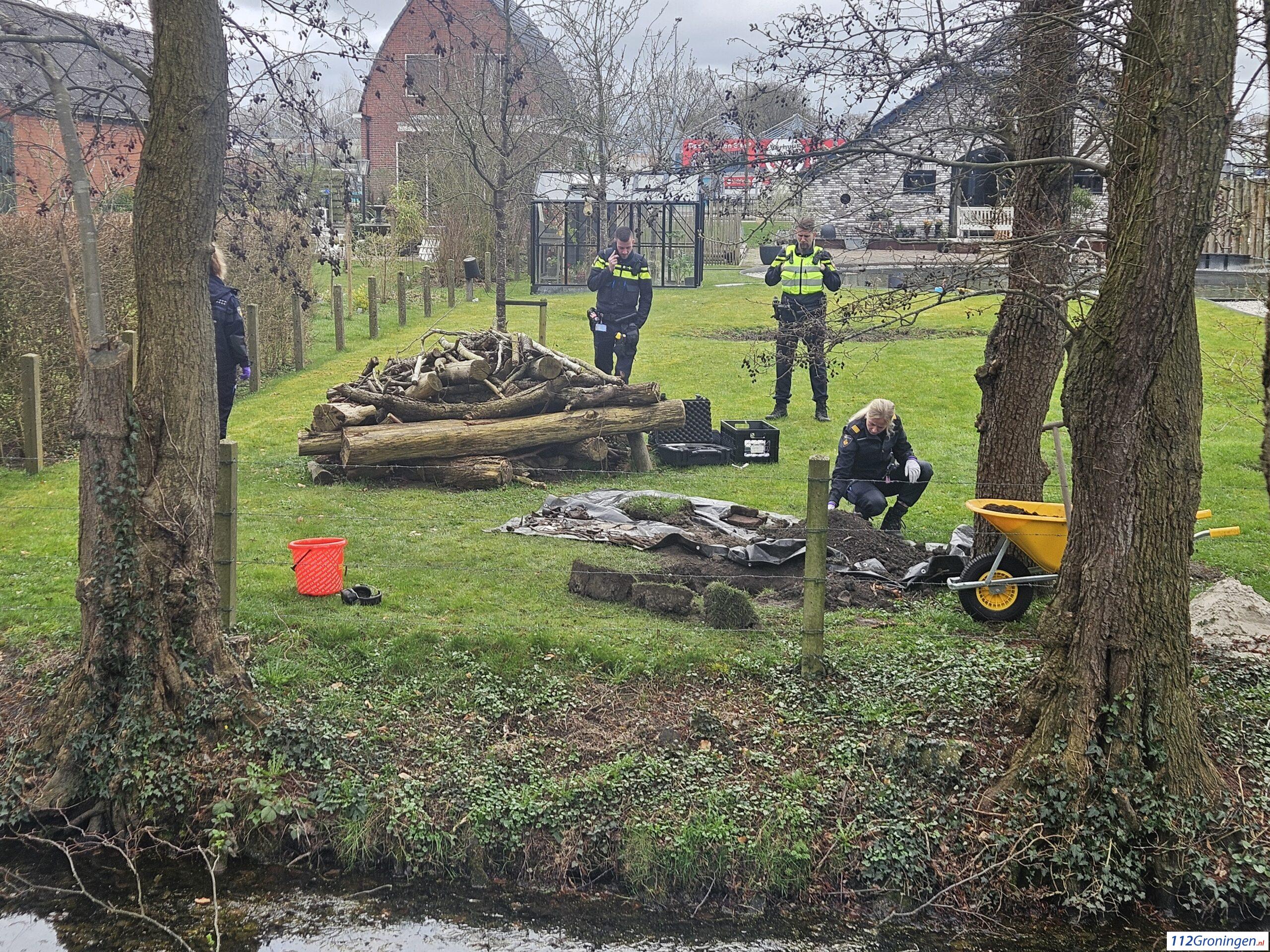 Volgens 112 Groningen was een persoon met een metaaldetector in de tuin aan het zoeken en is er een kuil gegraven. Het onderzoeksteam is rond 14.00 uur weer vertrokken. Onduidelijk is of zij iets hebben gevonden.