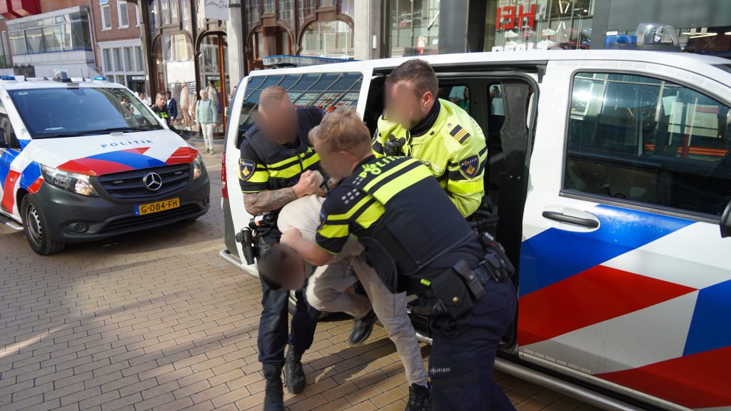 Meerdere politie-eenheden werden ingezet bij de aanhouding van de twee verdachten. Eén van hen was nog steeds niet bekoeld bij aankomst van de agenten. Deze man verzette zich hevig en werd met drie paar politiehanden een politiebusje in gewerkt. Daar besloot de agressieve verdachte het interieur te bewerken, waarna een speciaal arrestantenbusje zijn vervoermiddel werd richting een politiecel.