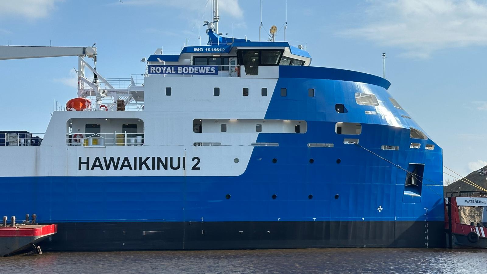 Met wat kleine strubbelingen is de Hawaikiniu 2 zondagavond gearriveerd in de Hunzehaven. De doorvaart van het grote schip zal voor tal van automobilisten nog wel een staartje gaan krijgen.
