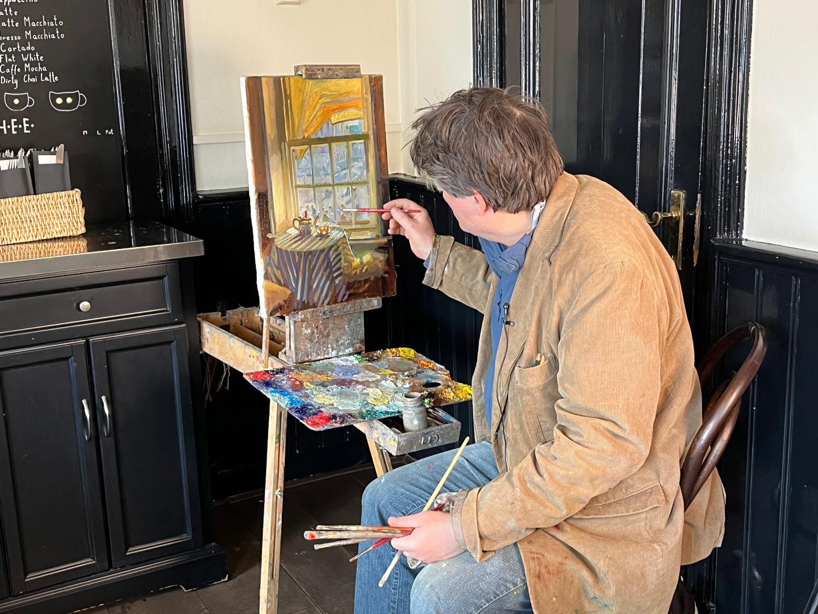 Als het weer meezit, is Joost veel op straat te vinden. Dan zet hij zijn volbeladen fiets neer, zet zijn ezel klaar en gaat ter plekke aan het werk. “Aan het begin was ik zo zenuwachtig, maar als je vertrouwen uitstraalt, je bent ontspannen en je doet je ding, dan laat eigenlijk iedereen je met rust.” Maar op de momenten dat mensen hem niet met rust laten, geniet de kunstenaar van de interactie. Mensen spreken hem aan, en hij maakt graag een praatje met ze.