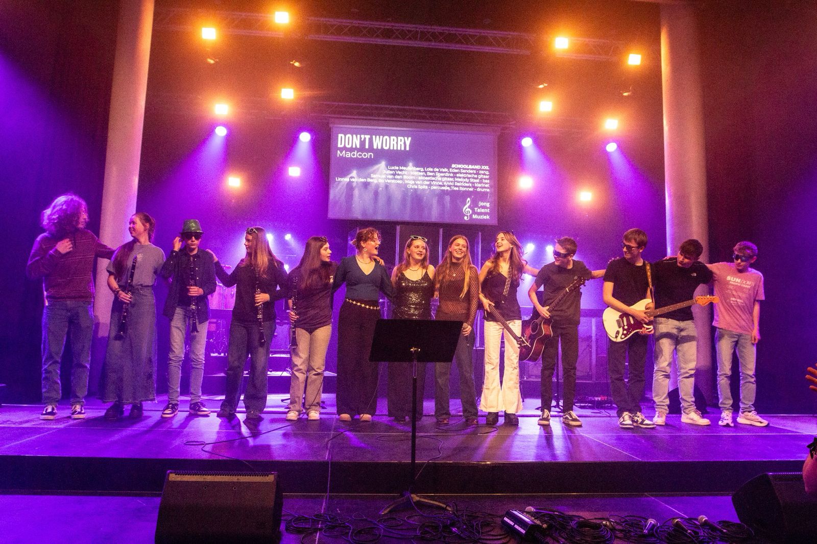“Het ging ontzettend goed. Je kunt zeggen dat we een geoliede machine zijn. Vanochtend ga je in alle vroegte naar een verhuurbedrijf om een busje op te halen, vervolgens rijd je naar school om alles in te laden. In samenwerking met leerlingen die de techniek verzorgden, hebben we als ware professionals alles opgebouwd en een heel mooi concert neergezet. Inmiddels is alles weer opgeruimd en kunnen we terugkijken op een hele mooie dag.”