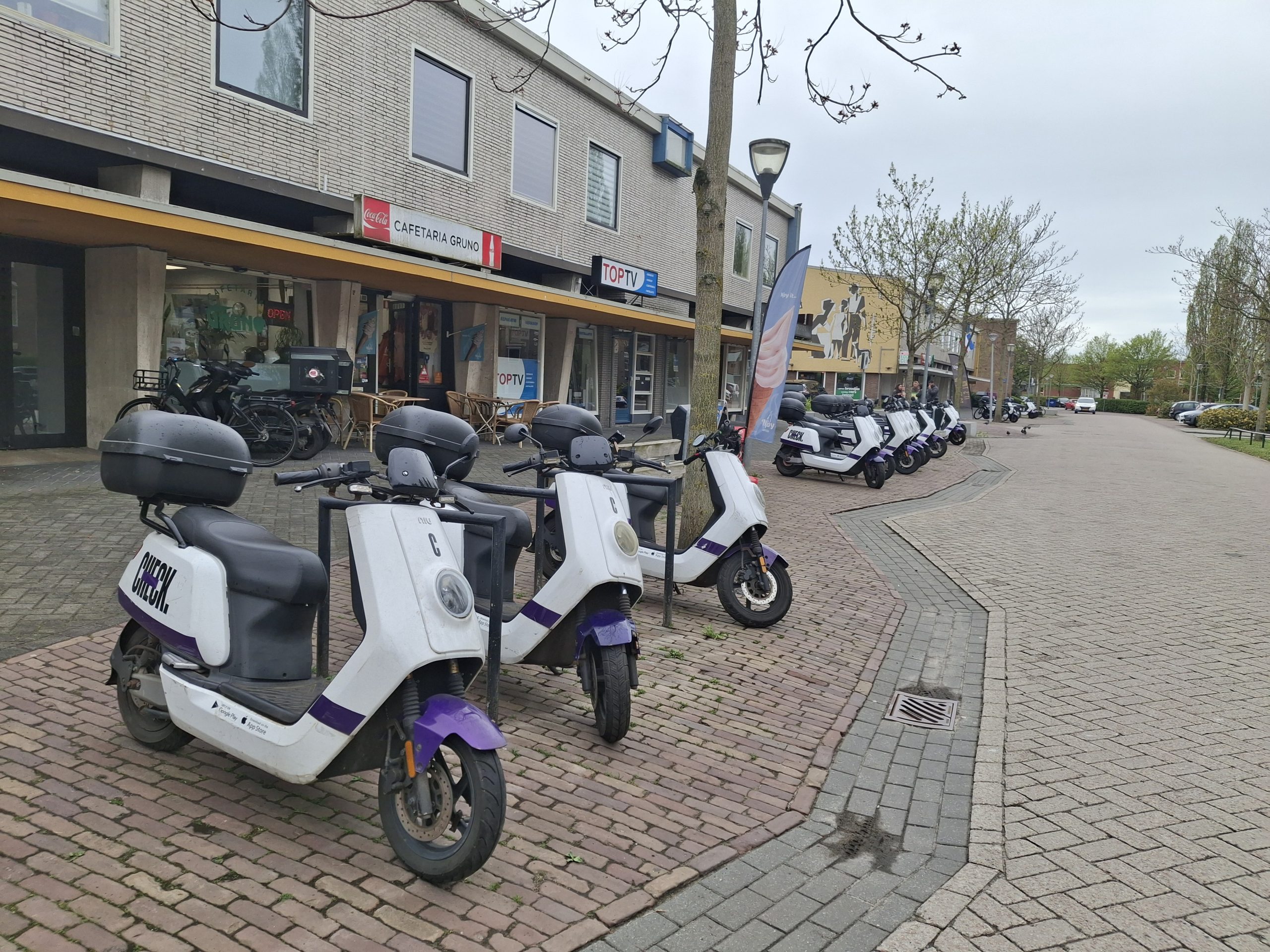 De winkelstrip aan de Jacob van Ruysdaelstraat is de afgelopen periode opgeknapt, maar het resultaat wordt volgens omwonenden verpest door soms wel vijftien deelscooters van Check op het trottoir.